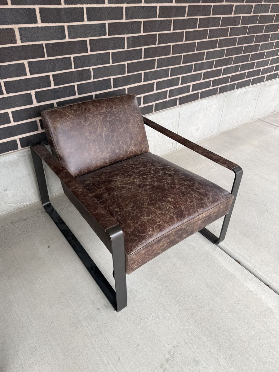 VenmoI am selling two modern brown leather, metal-frame chairs. These were originally used in an office and then have sat unused for the past year. Sturdy and in great condition. Please text if interested. No trades. Cash/Venmo only.