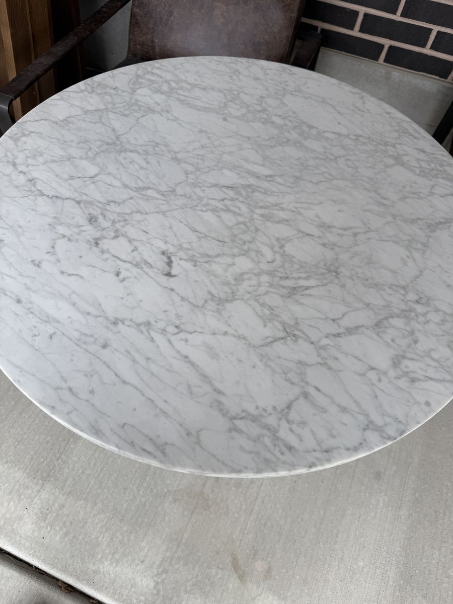 VenmoModern round dining/cafe table. Features a solid marble top and a heavy-duty black metal pedestal base. Perfect for tight spaces or as a breakfast nook table. It's solid, heavy, and well-built. Asking $150. Pickup in Draper.