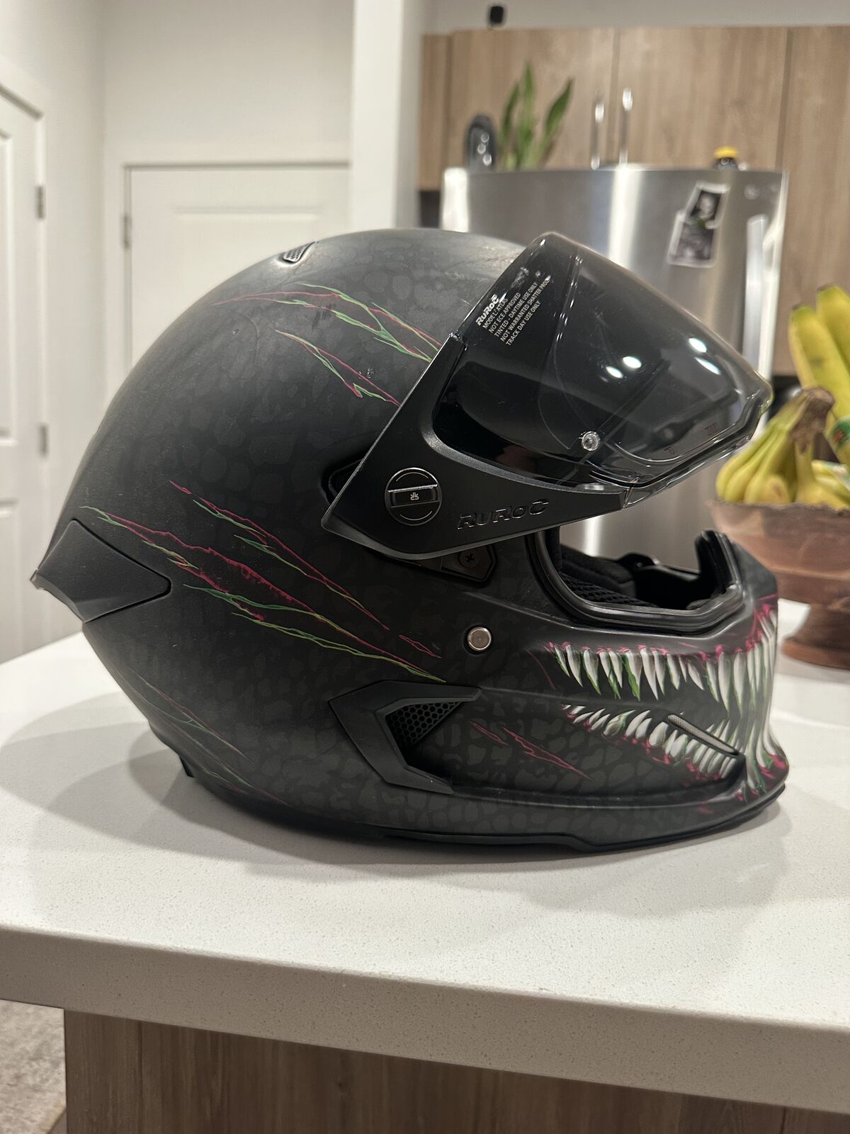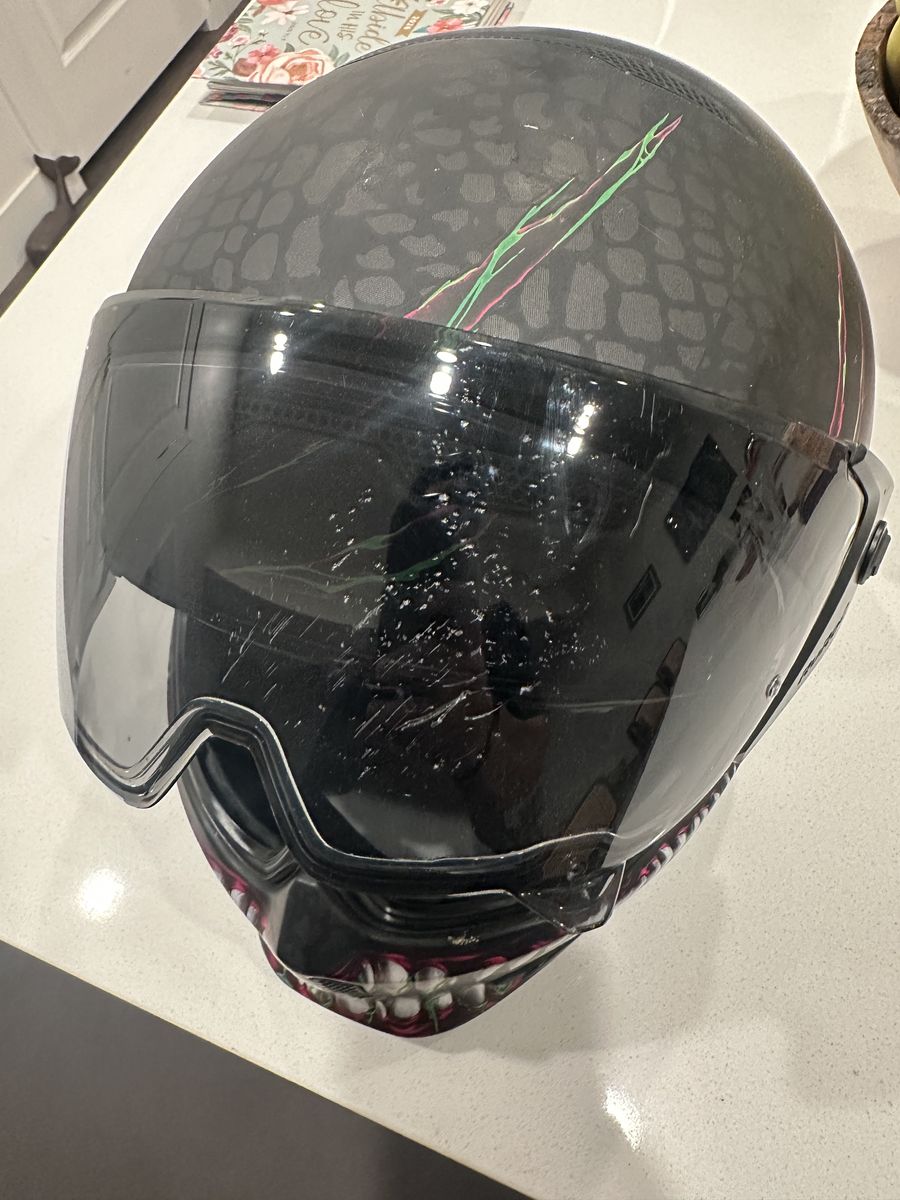 ApplePayComes with a clear visor with anti fog film and shockwave audio system. Helmet is in great condition, the smoke lens is scratched though