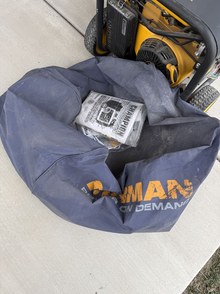 Electric push-button start and an 8-gallon gas tank for long run times. Perfect for home backup power, RV trips, or job sites. Has a built-in wheel kit and a folding handle so you can actually move the thing.