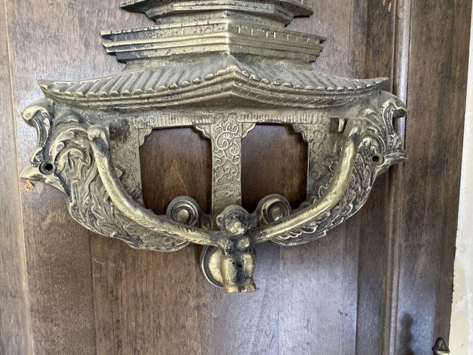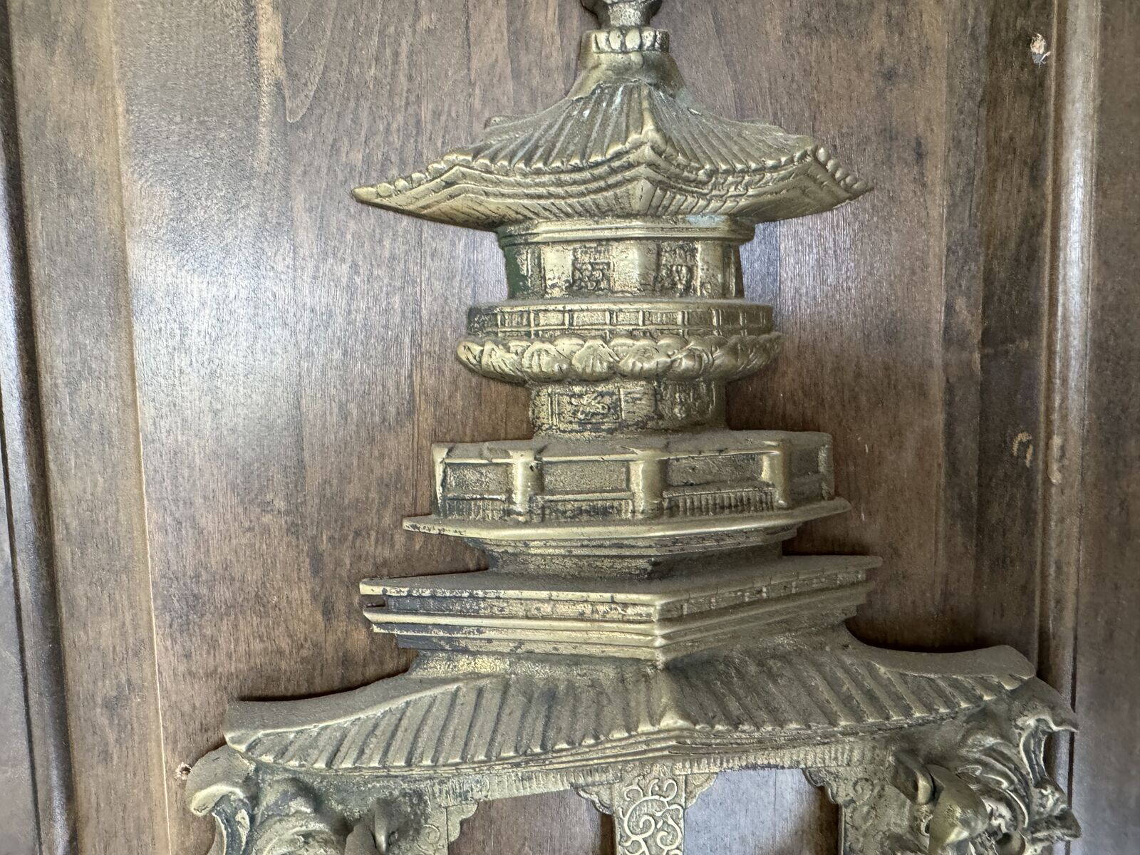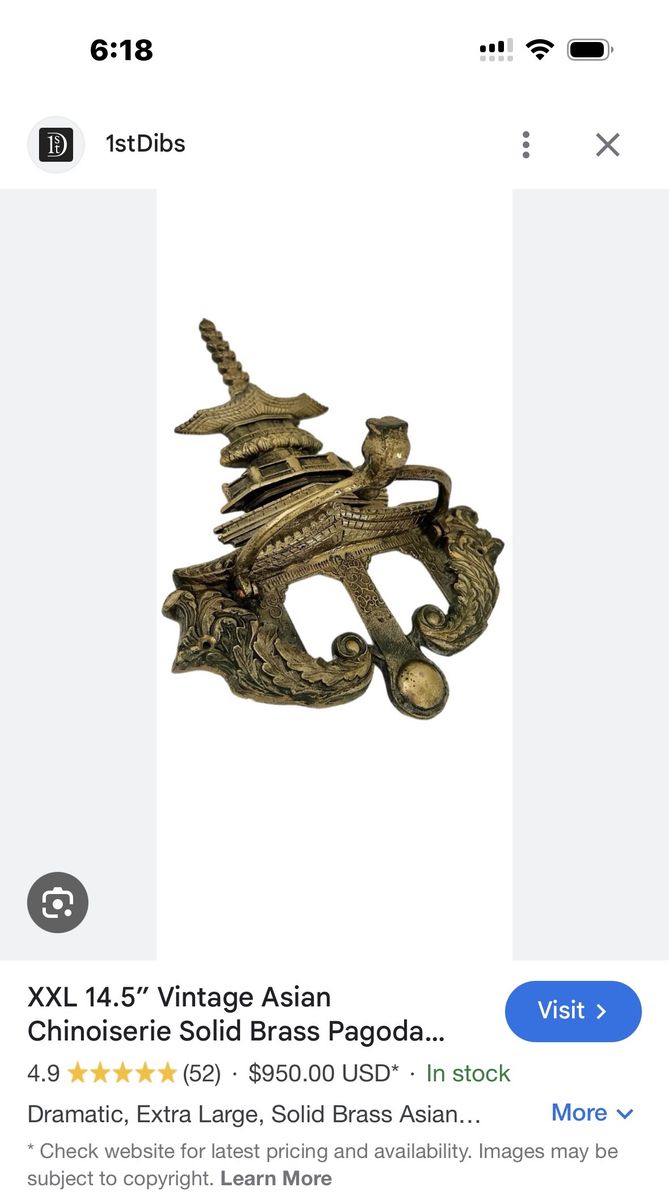 Extra large 14.5” solid brass vintage Pagoda monkey door knocker. These are hard to find and very collectible. Very detailed and ornate. A beautiful piece should make a great addition to any collection. It sells for $950 and you can get this one 1/2 the cost at $450. Cash only. Cash only. Text only. 801-979-0820