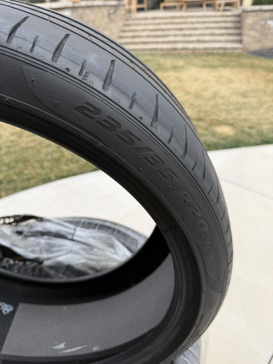 VenmoSelling a matching set of 4 Pirelli P Zero (PZ4) tires, size 235/35 R20 92Y. These are the premium "T0" Tesla-spec tires that come factory on the Model 3 Performance. Tires are in good shape with even wear. One tire has a minor damage (see photos). Perfect for anyone needing a fresh set for their Tesla without paying $1,200+ for a new set.