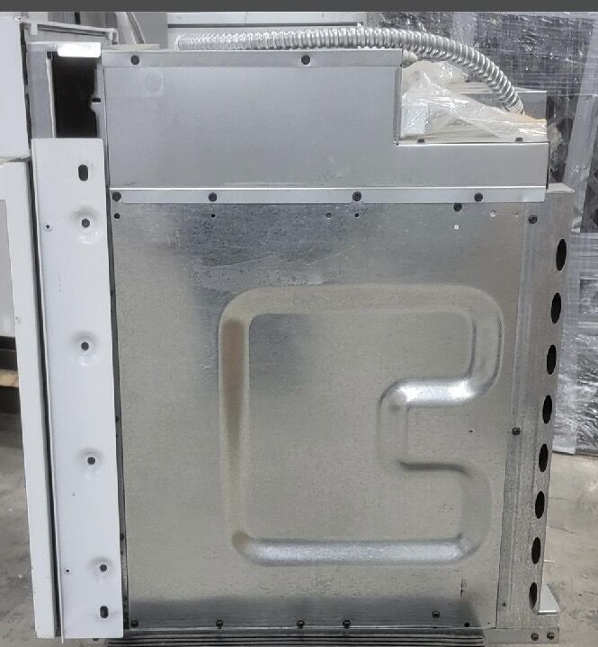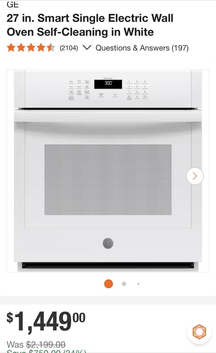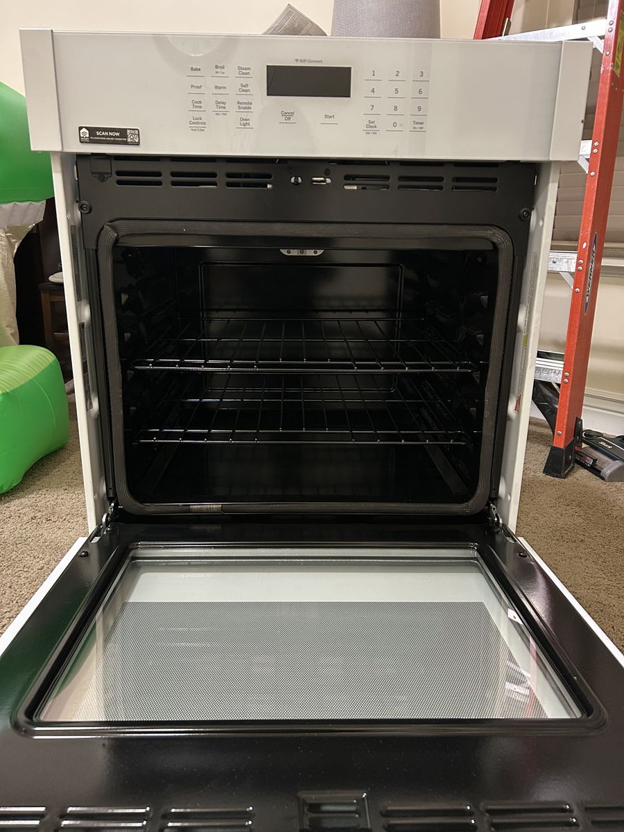 Selling a brand new out of the box wall mount oven with a couple scuffs/dings on the front that is pointed out in the pictures. It has two oven racks, self cleaning. steam cleaning, broiler, remote access. Works with Alexa, Google, Google Assistant, IFTTT, Proprietary App. Stove weighs 113 pounds. Dimensions are: H 28.75 x W 26.75 x D 26.625. It is 4.3 cu ft. Cut out front to back is: D 23.5 x W 25.25 x H 27.625.