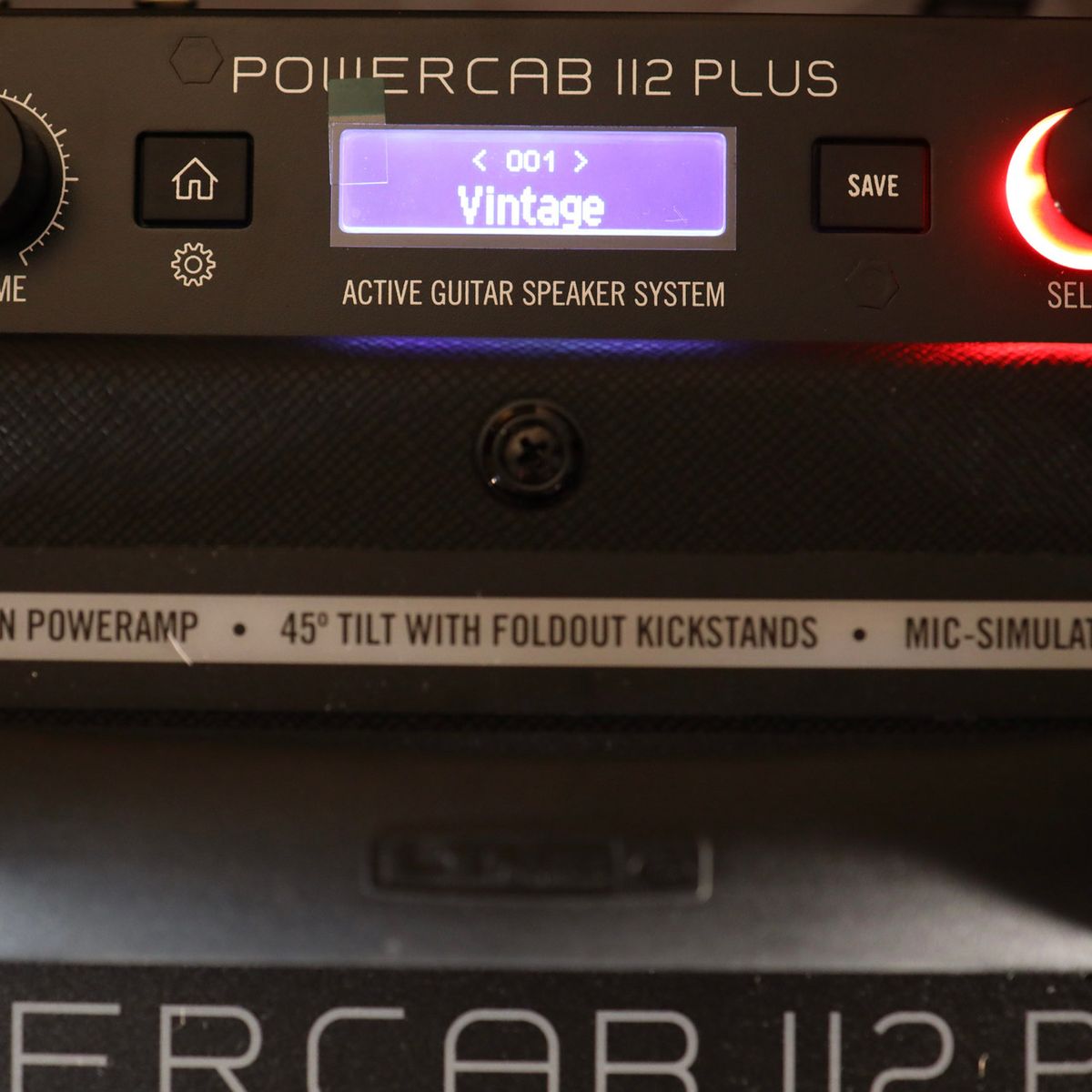 The Powercab 112 Plus active stereo guitar speaker system features a 250-watt power amp and a lightweight 12 neodymium coaxial speaker with a high-frequency compression driver. If you are happy with your modeler’s onboard cabinet models and just want to hear the sound of your presets amplified, simply connect your modeler to Powercab 112 Plus, select Flat (FRFR) mode, and play.