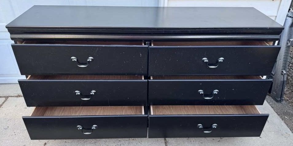 VenmoBlack dresser! Could use some paint touch ups but drawers are good. Willing to deliver for $50.