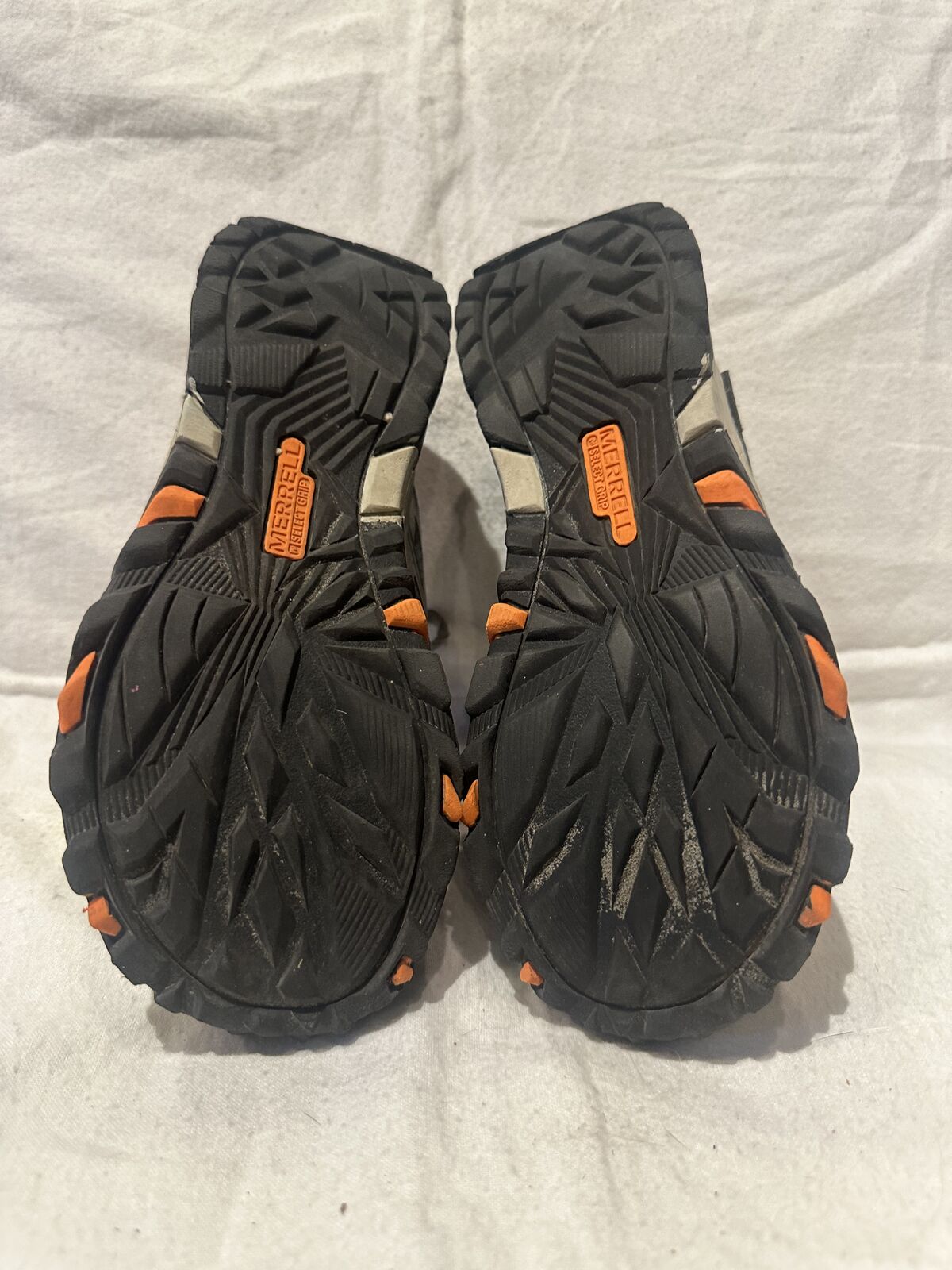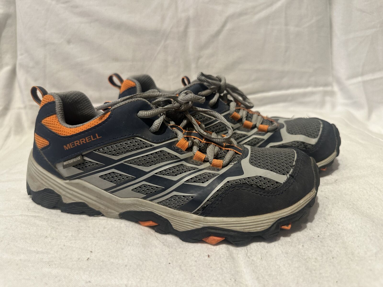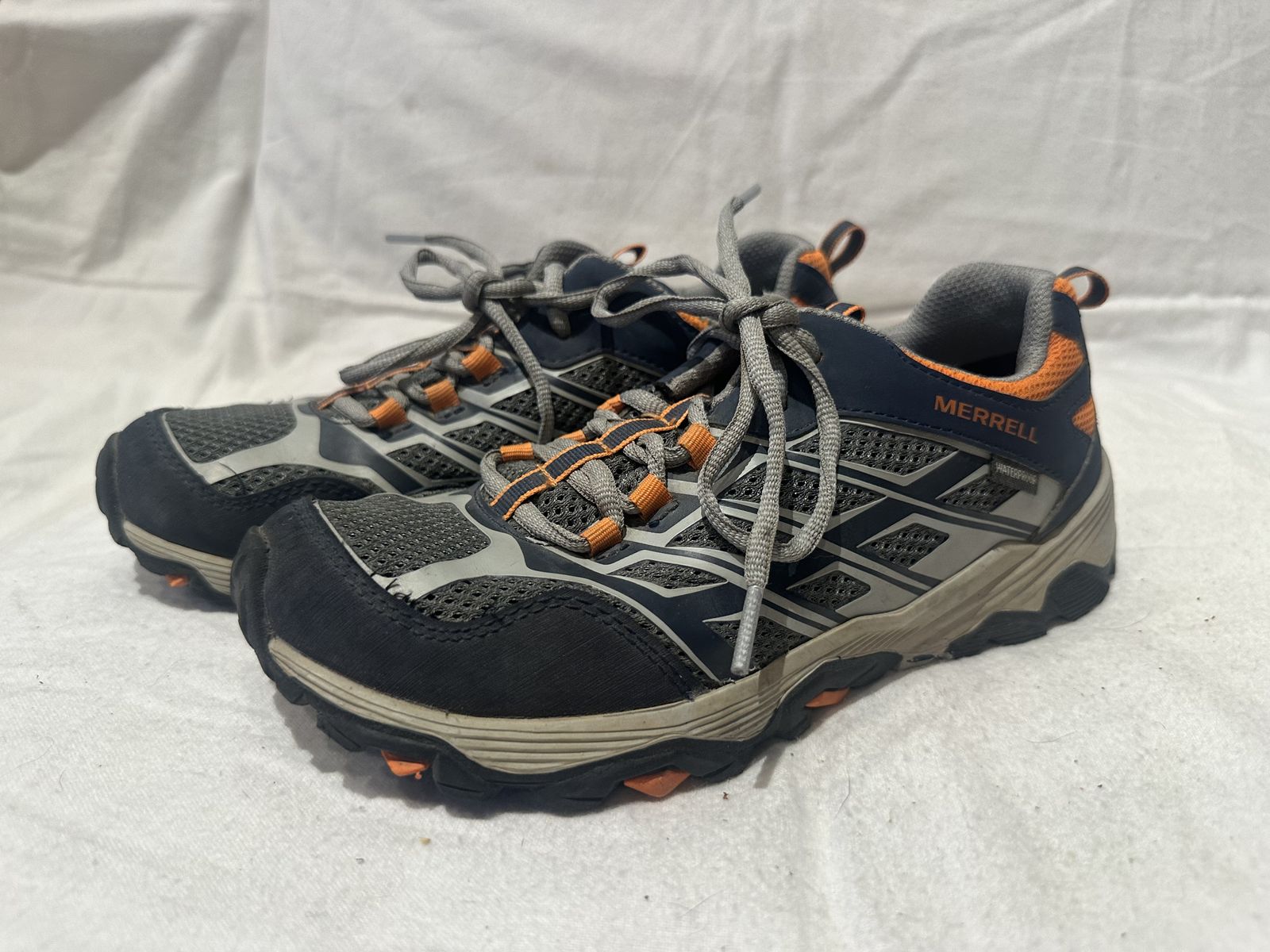 Merrell youth size 5 grey/navy with orange trim, mesh waterproof lace up hiking shoes. These are in excellent condition, see photos for details. I take cash or Venmo, but cash is preferred. Text is best. 801201-4446. Check out my other ads for additional sizes and styles.