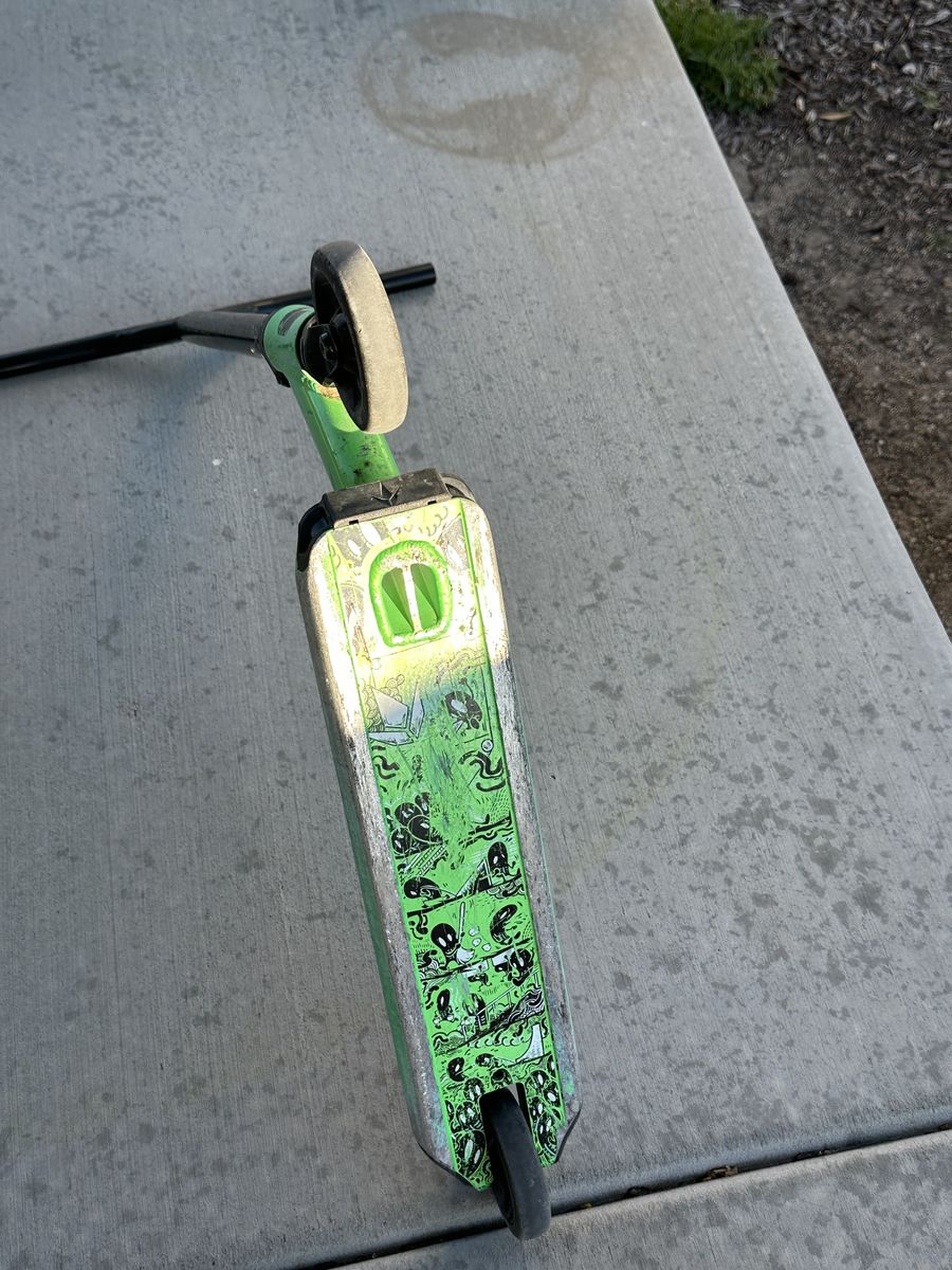 Cult scooter good ripper. Has no grips Normal wear, boy would go to the skate park regularly.