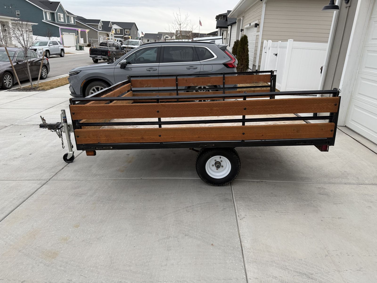 Great utility trailer for sale! Mostly used it to haul my ATV’s and weekend dump hauls. I’ve replaced the hubs, bought all new tires last January, installed new electrical for the lights and replaced the jack a few months ago. Dimensions are 98”x 85”. Only reason we are selling is to get a bigger trailer. Feel free to message with any questions.