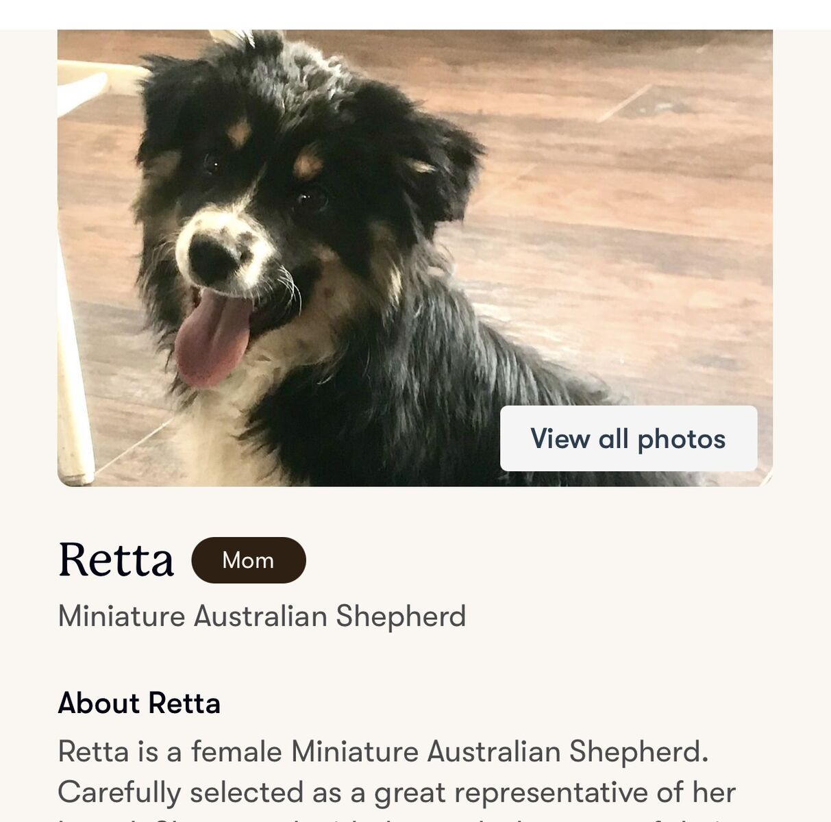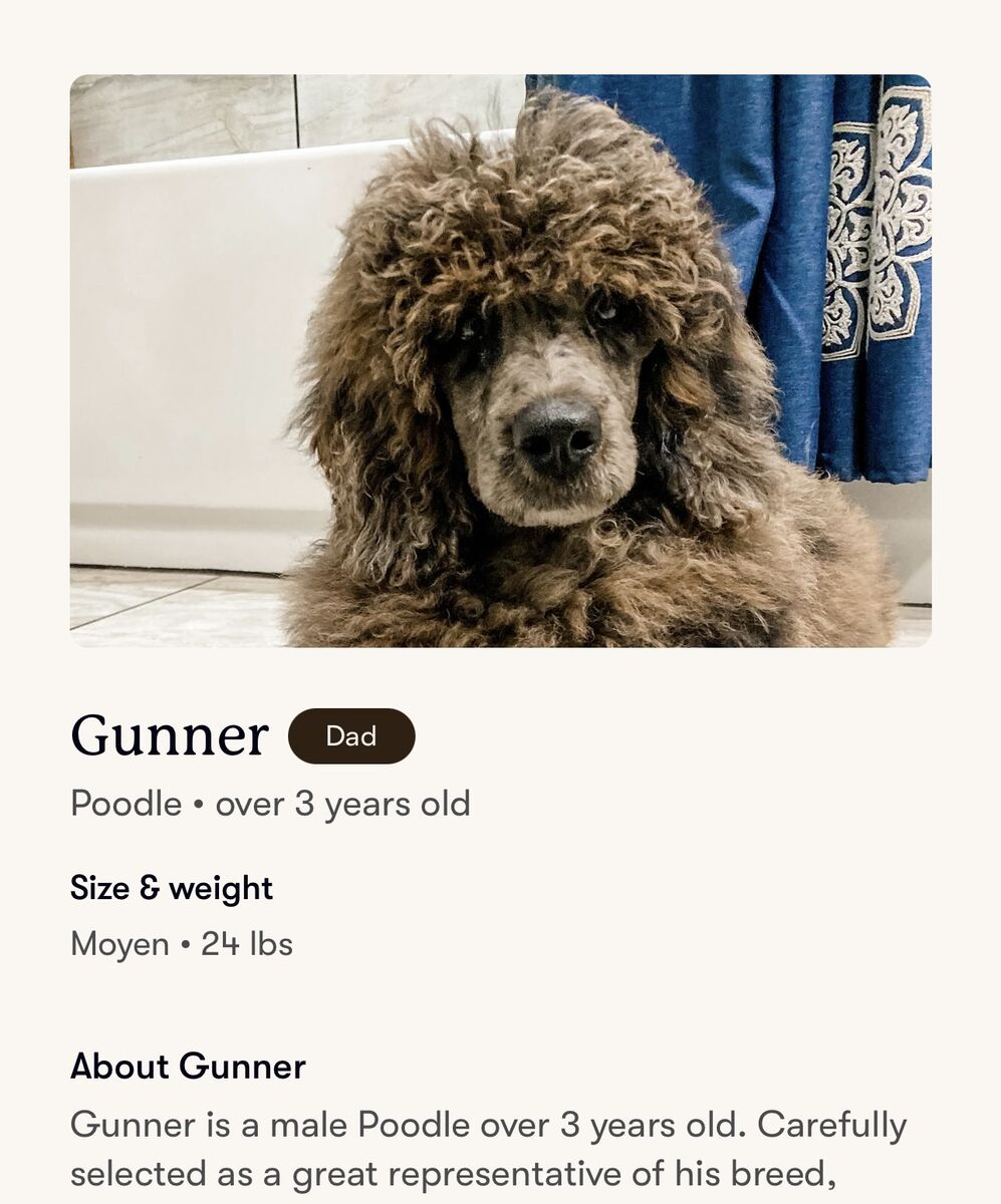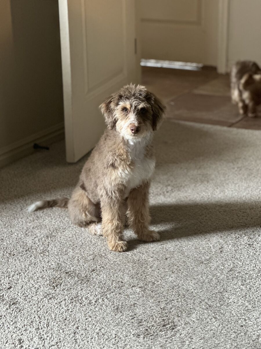 Her mom is an miniature Australian Shepherd and dad is a Poodle — so yes, she’s clever-clever. She learns fast, loves having something to do, and thrives with an active family. Think walks, hikes, fetch sessions, backyard zoomies, and lots of love.
