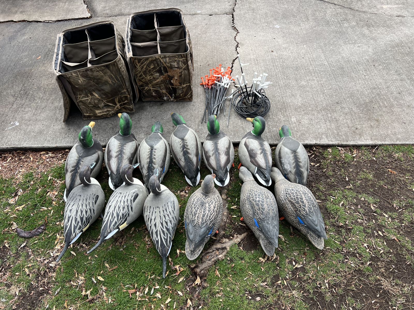 VenmoSelling 13 full body decoys, with two 6 slot zip bags, 14 bases, and about 30 stakes. Text me with any questions