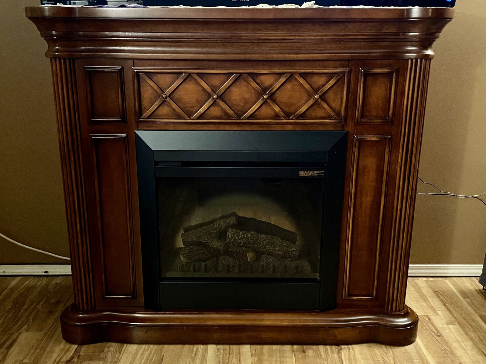 Beautiful traditional electric fireplace with solid wood mantel surround. The fireplace works great and provides excellent supplemental heat. Realistic flame and glowing ember effect can be used with or without heat.