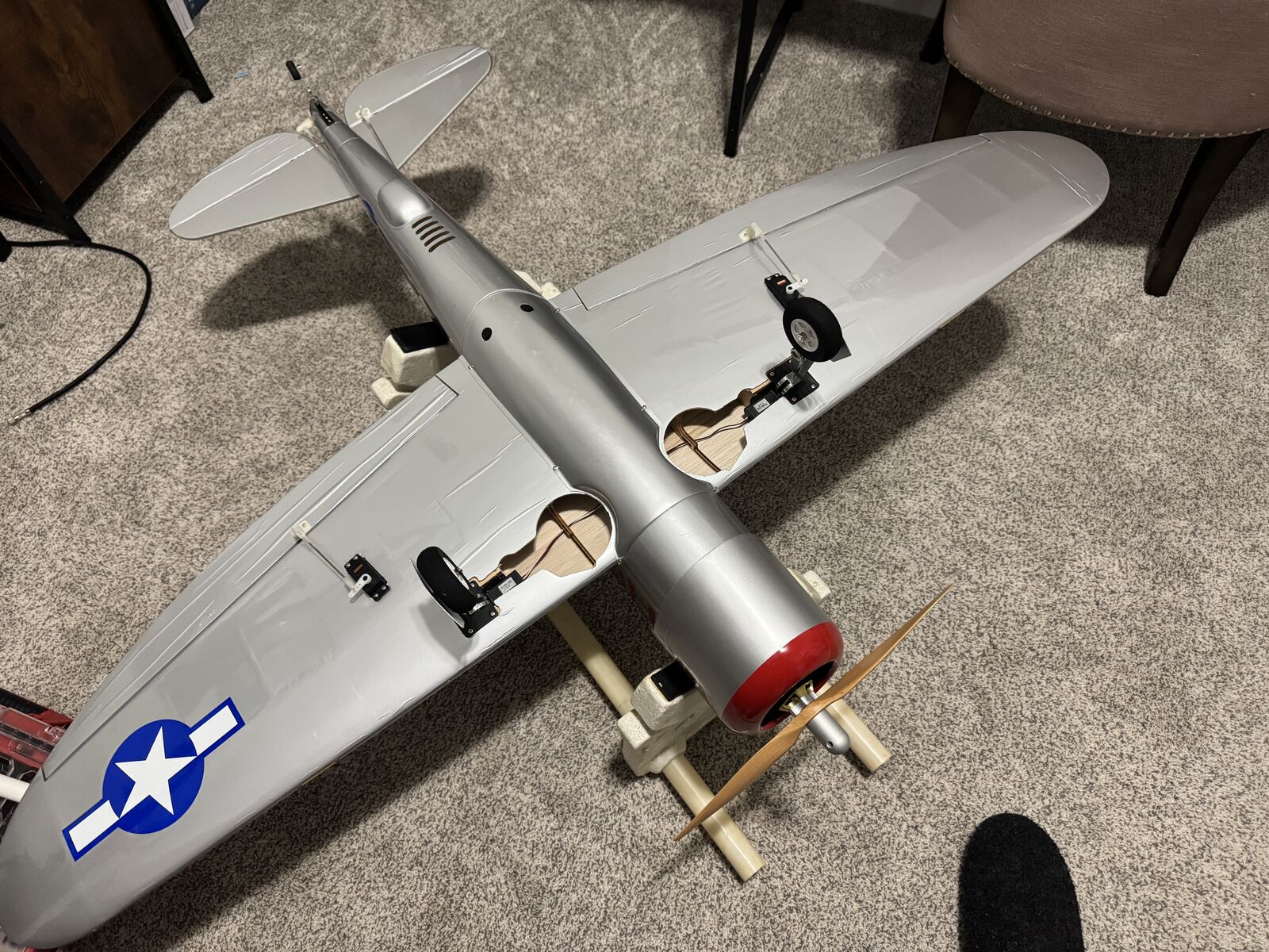 VenmoHasn’t been flown. Beautiful balsa plane. 4s 5000 or can run 6s if you change out the wood prop. Has a 6 channel spektrum receiver in it. 6-8 minutes flight time.