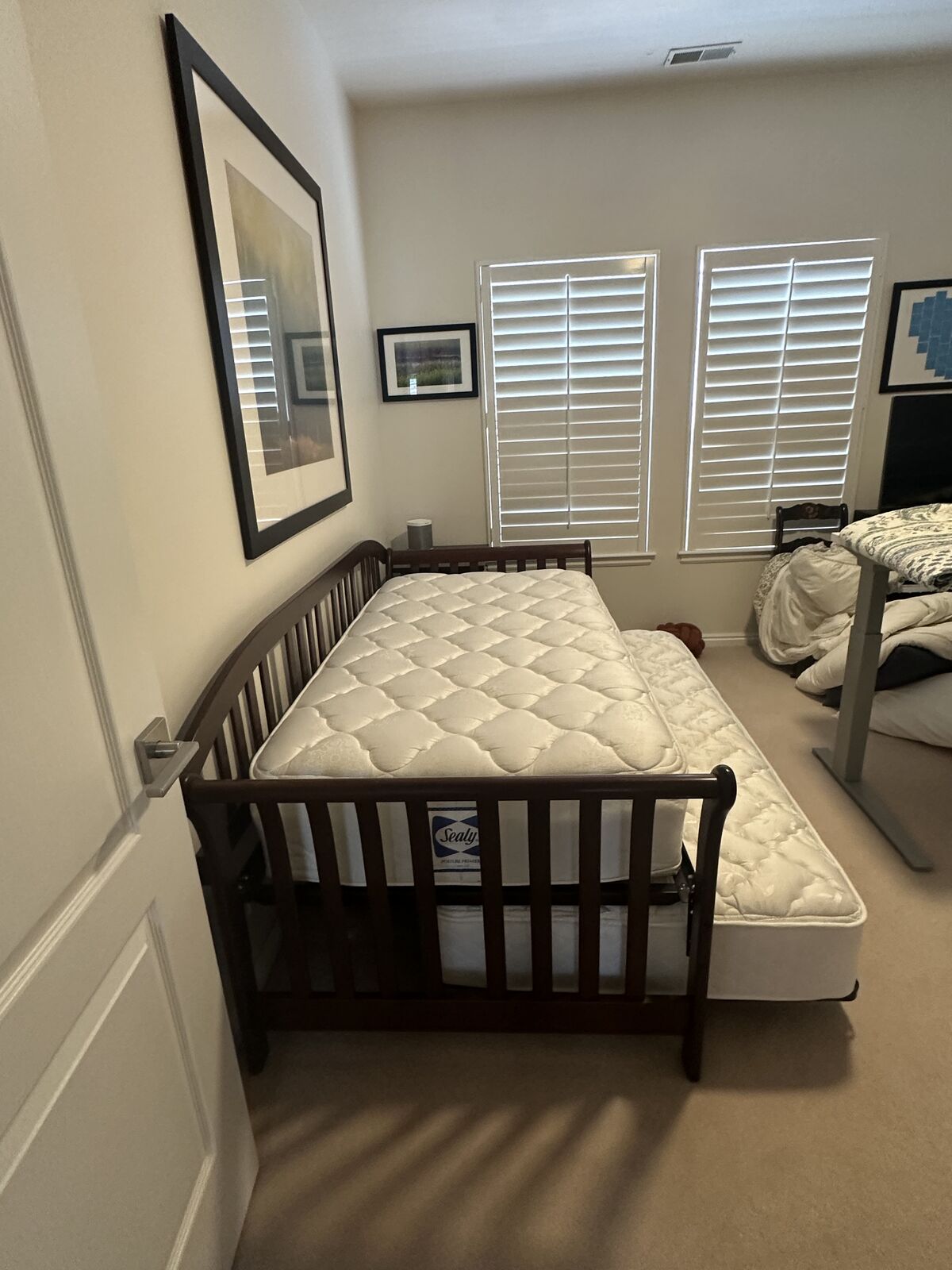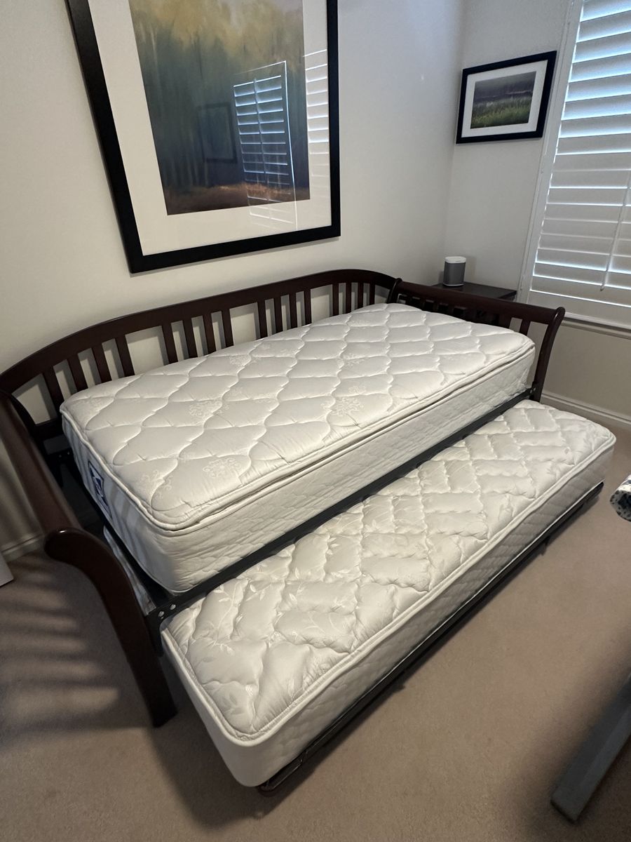 PayPalVery nice bed with clean mattresses. Was in a guest room in a non smoking home. Linens and duvets can be had for extra cash if wanted.