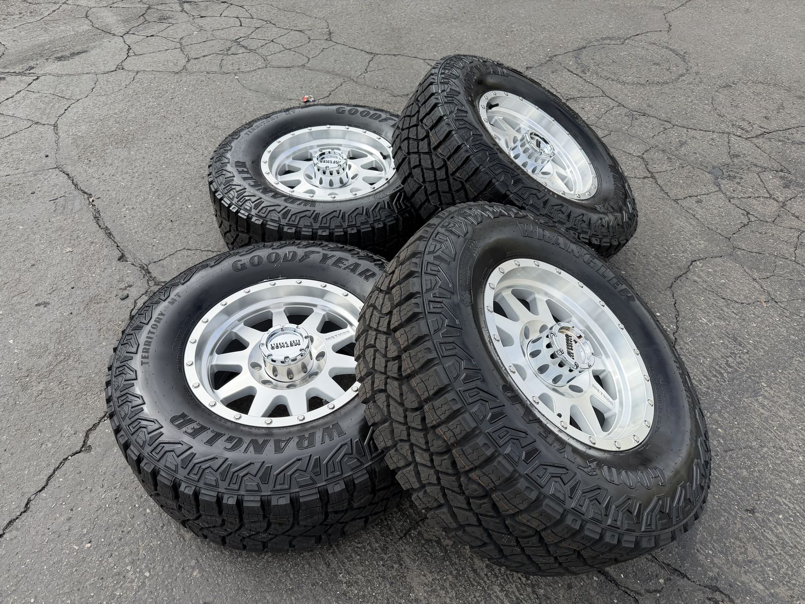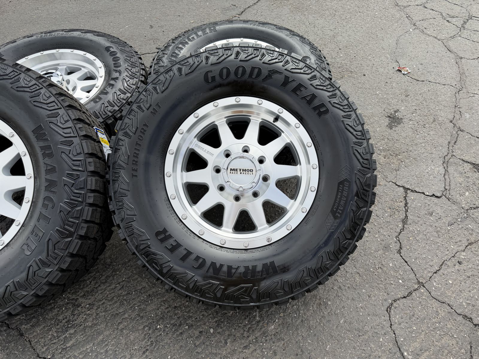 ZelleBrand new package! LT305/70r18 Goodyear Territory MT tires on Mounted and balanced on a set new of Method MR301 Silver finish 18x9 +18et offset. 8x170 bolt pattern these fit 1998 and newer Ford F-250 F-350 Superduty Powerstroke and Excursion. Huge savings! Call or txt 435-760-1194