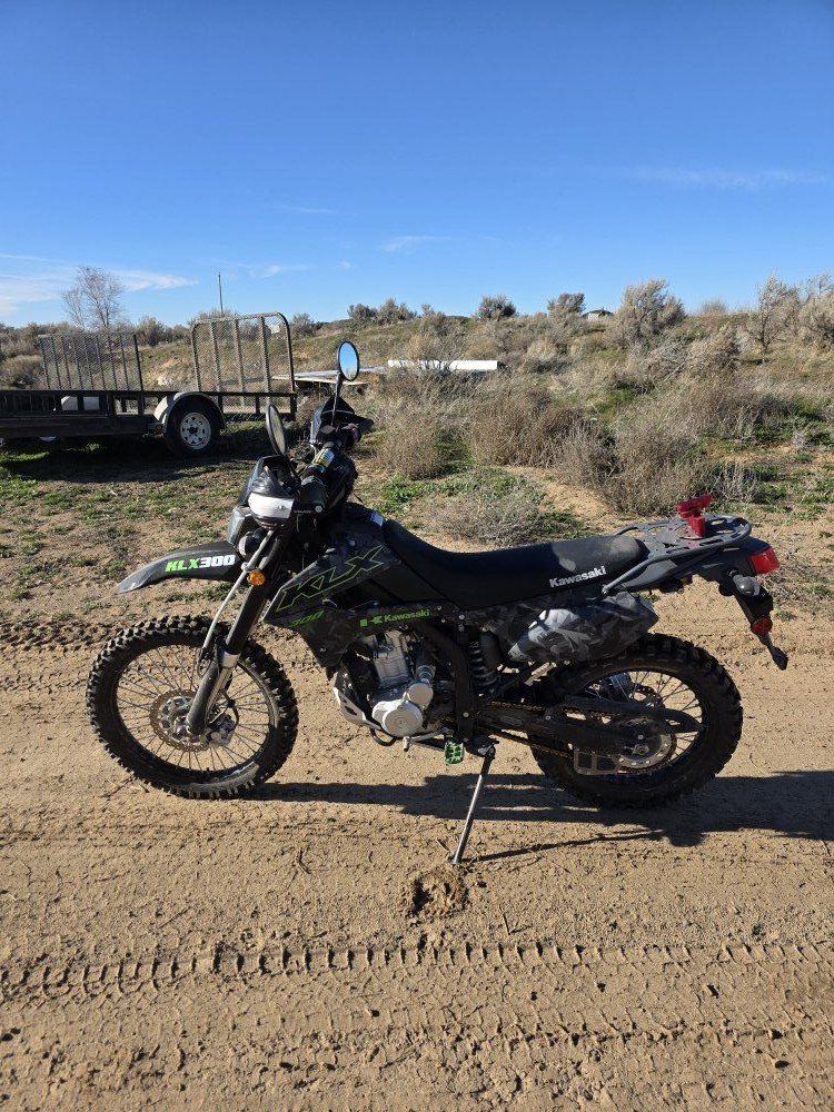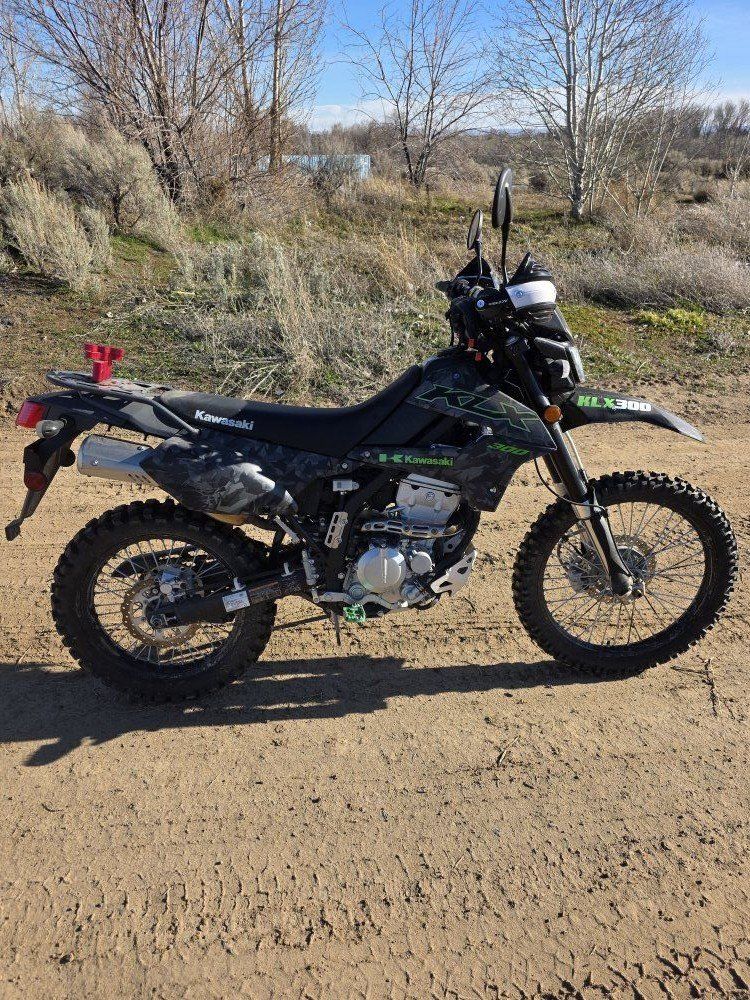 2022 kawasaki klx 300 new tires in the fall, fresh chain,new hand guards, has a usb charger,and radiator guards, new pro taper bars,and a rotopax mount for longer rides.bought this to do more mountain riding with my son ,but we both decided a side x side would be best. still owe on the bike price to sell 4200.00
