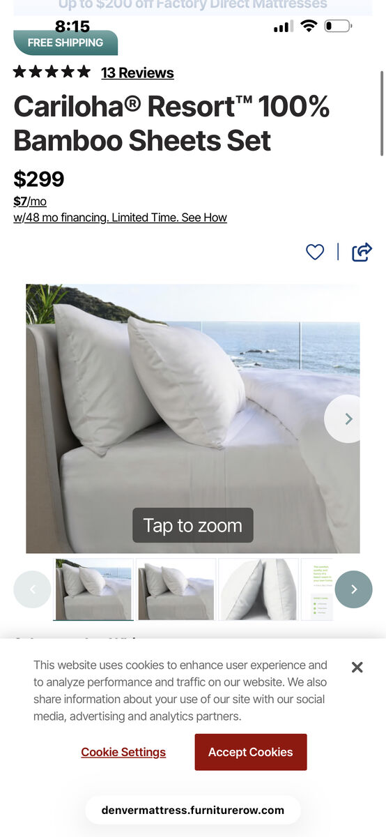 VenmoBrand new Cariloha bamboo sheets! For king bed. Originally $300. Has 1 flat, 1 fitted and 2 king pillowcases.