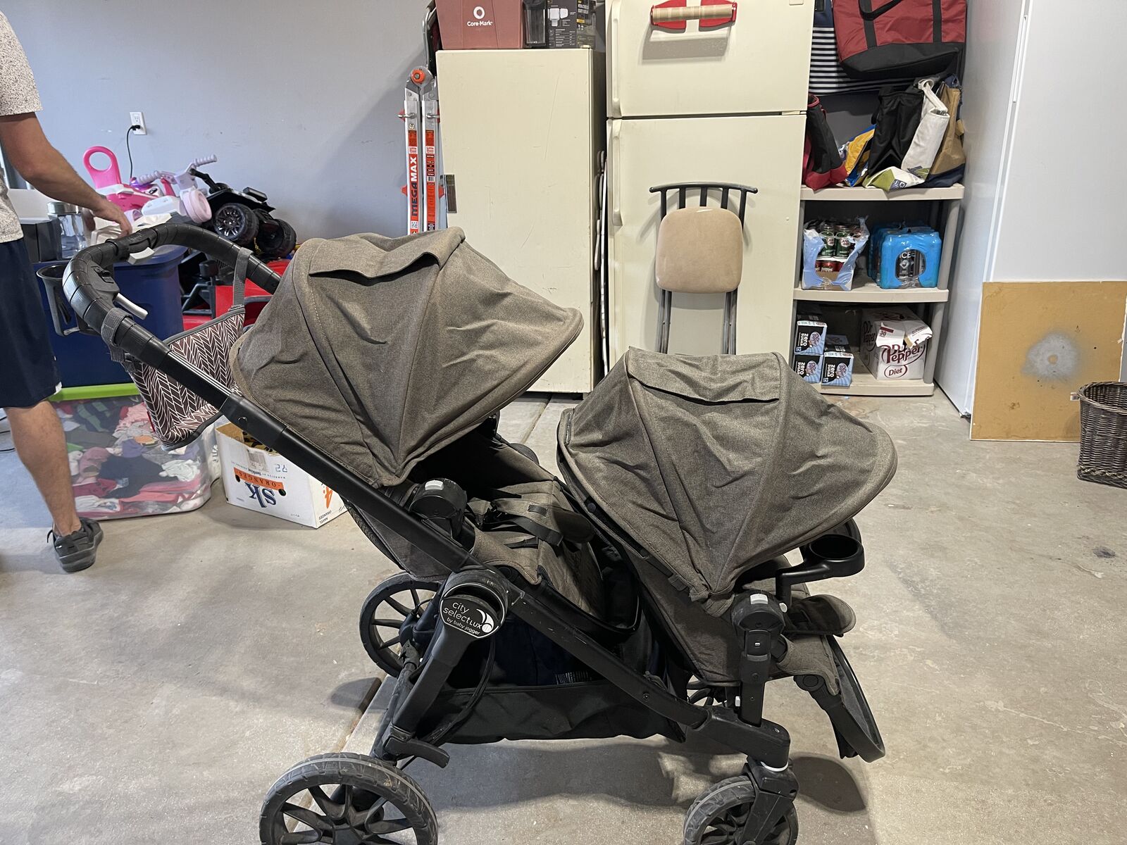 VenmoReally good condition one of the attachable trays still in the box. We absolutely love this stroller started with a single but upgraded it to a double. Sad our kids have outgrown it. City Select frames can’t be beat smooth ride and easy to push. Can take seats fully apart and wash. Better that the current “popular” single to double on the market.