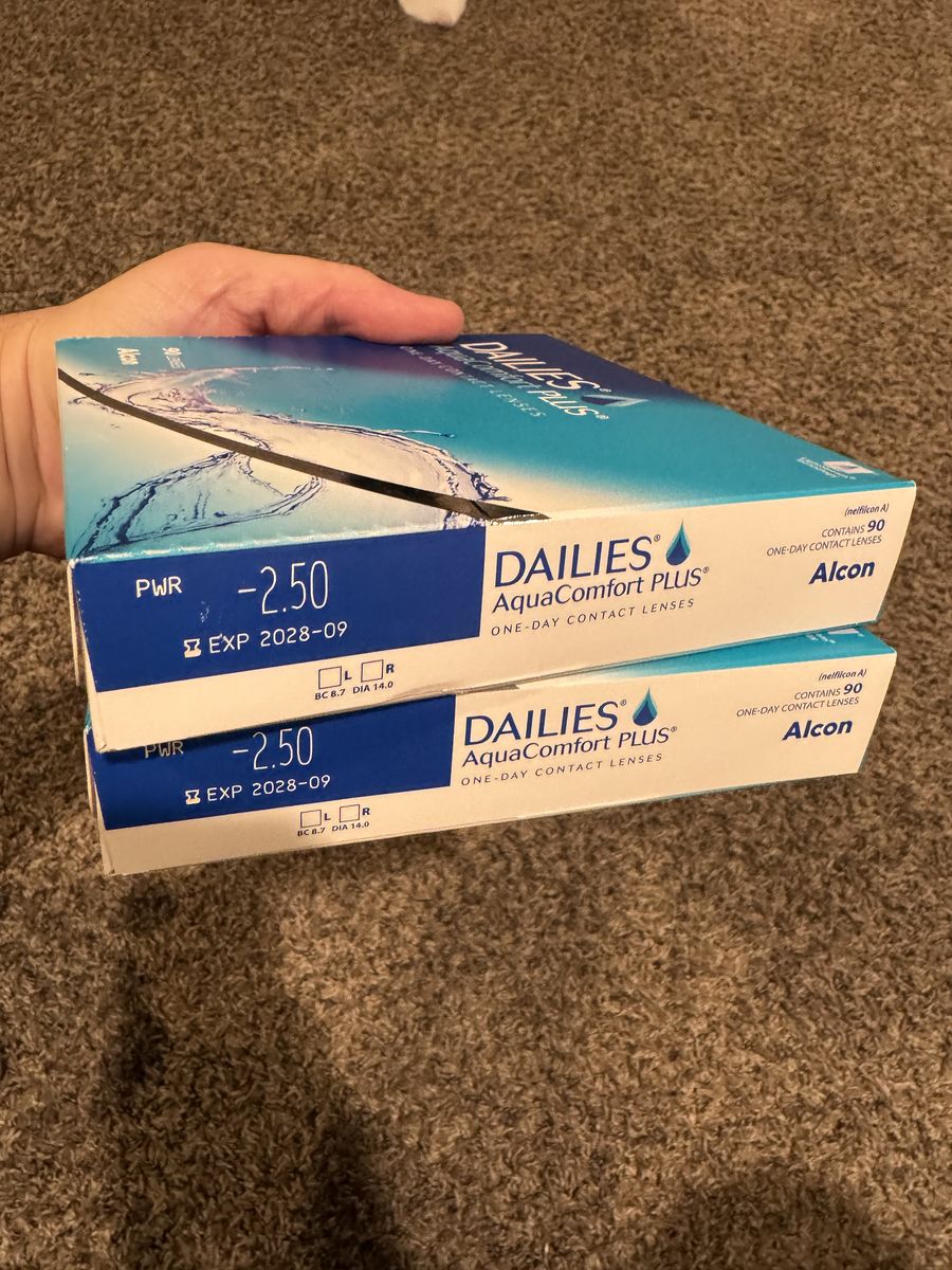Zelle2 unopened boxes of Dailies Aqua Comfort Plus 90 lenses per box.