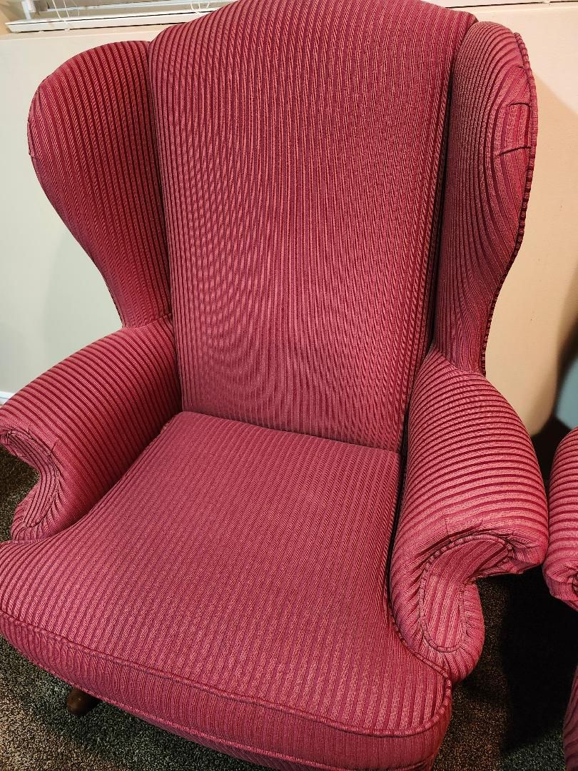 Two High Back Red Chairs; really good condition; must pick up (seller responds to messages Mon-Sat)