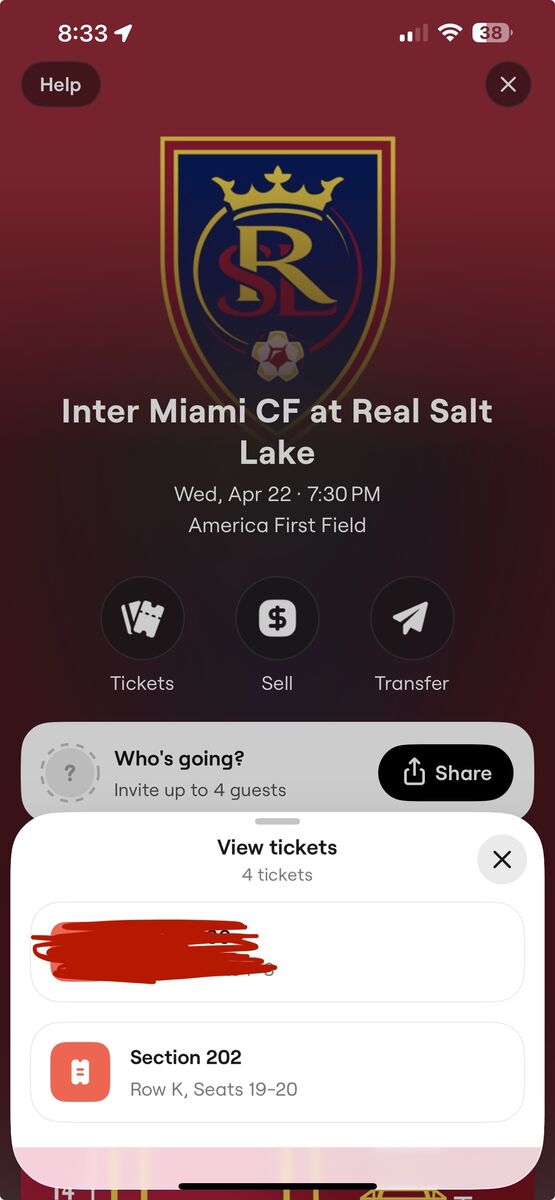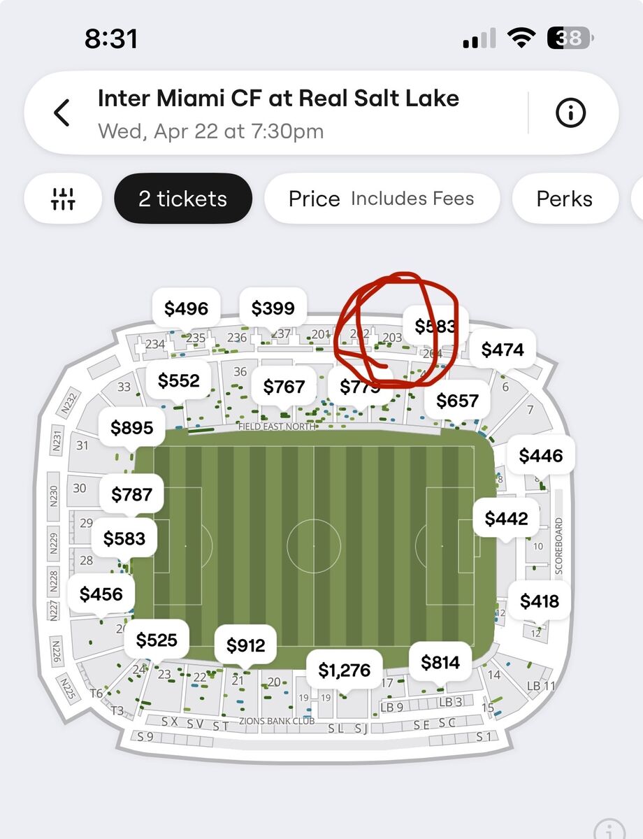 ApplePaySection 202, row K, seats 19,20 See Lionel Messi play! $495 - Price is per ticket