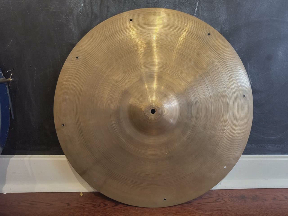 ZelleMedium at 2420g. Great for those playing heavier music who want extra stick definition and a clear bell. Rivet holes appear evenly spaced and factory drilled. This is a rare "Large Stamp Type III" stamp which I've only ever seen maybe two of in my life--great era for Avedis Zildjian cymbals. No cracks.