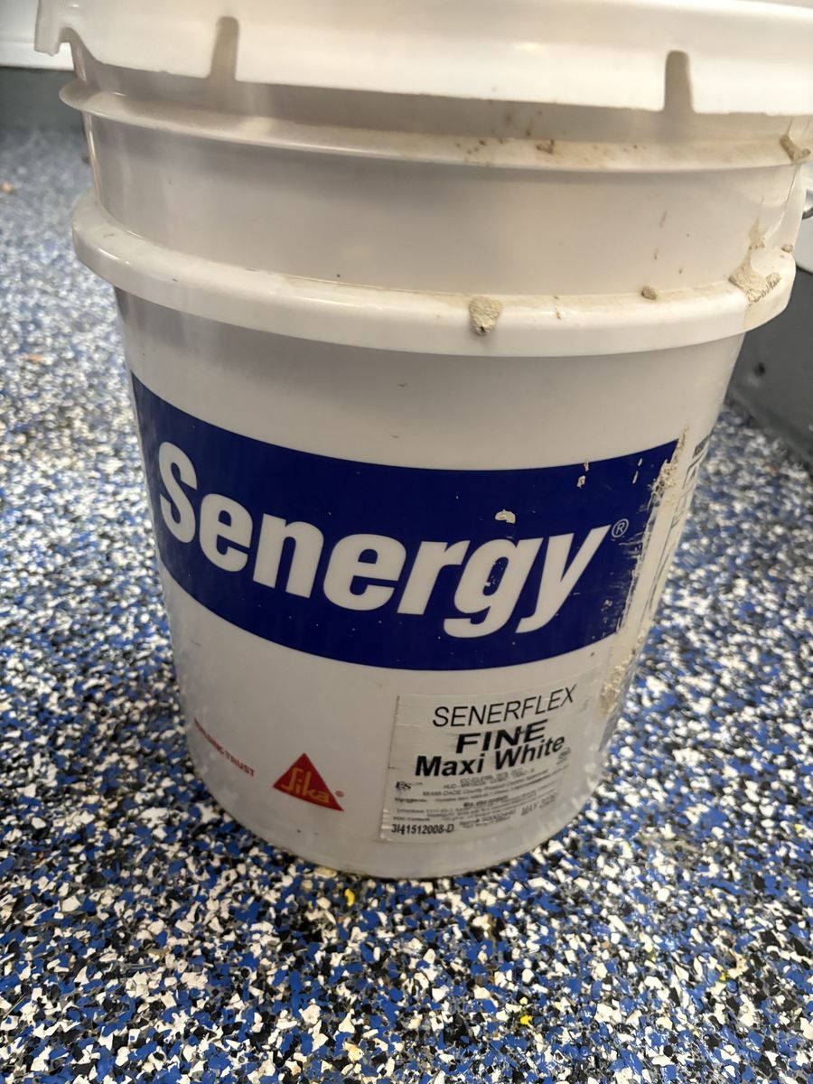 Senergy Decorative Masonary Finish, White, 5 gal, Pail. Senerflex Fine. Factory mixed, 100% acrylic polymer finish coat. Fine finish utilizes uniformly-sized aggregates for a uniform, fine texture. Item Features 100% acrylic polymer chemistry, long-term durability and weather resistance Integral color, reduced maintenance and recoating Weather-resistant, repels water and resists wind driven rain Seals existing, non-moving hairline cracks Breathable - does not blister, peel or flake Fine finish provides an aesthetically pleasing surface color and texture for the Senergy wall systems
