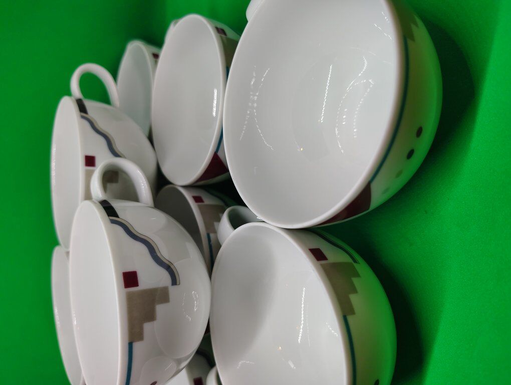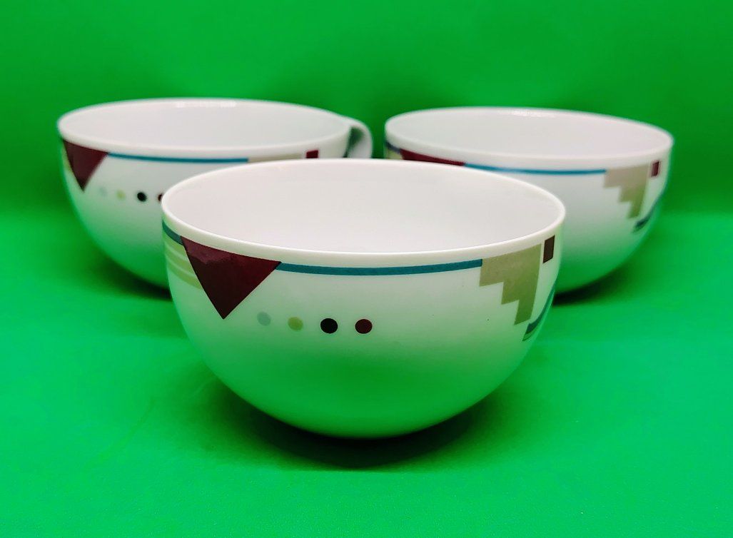 12 Studio Nova Y0105 Attitudes Geometric Design Flat 6 Oz Coffee Cups Collection Details Brand: Studio Nova (a brand under Mikasa). Pattern Name: Attitudes (Y0105). Style: Postmodern / Art Deco Revival / Memphis Design. Material: Often described as high-quality porcelain or pottery. Care: microwave, oven, and dishwasher safe. all cups are in very good condition no chips or cracks.