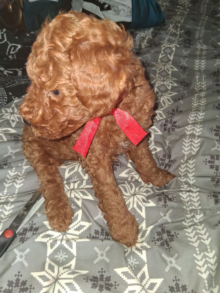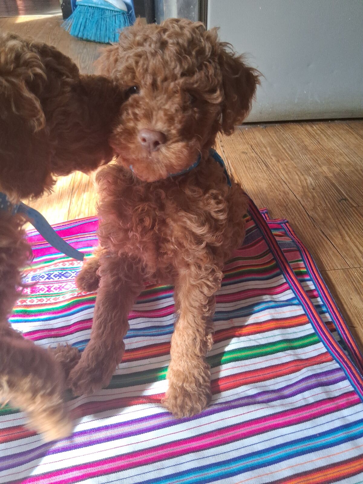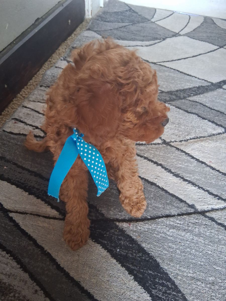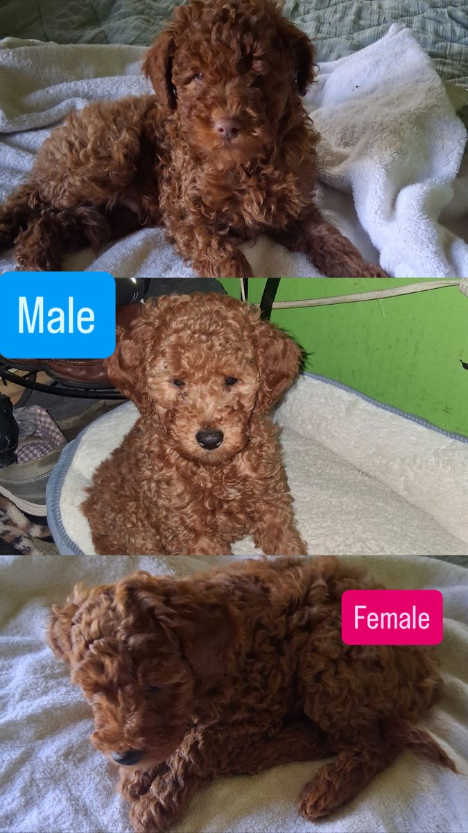 Zelle2 Boys 1 Girl 8 weeks old First vaccines done ️ Dad Medium Goldendoodle 40Lbs Mom Miniature Goldendoodle 20 Lbs Asking $1000 or best offer.