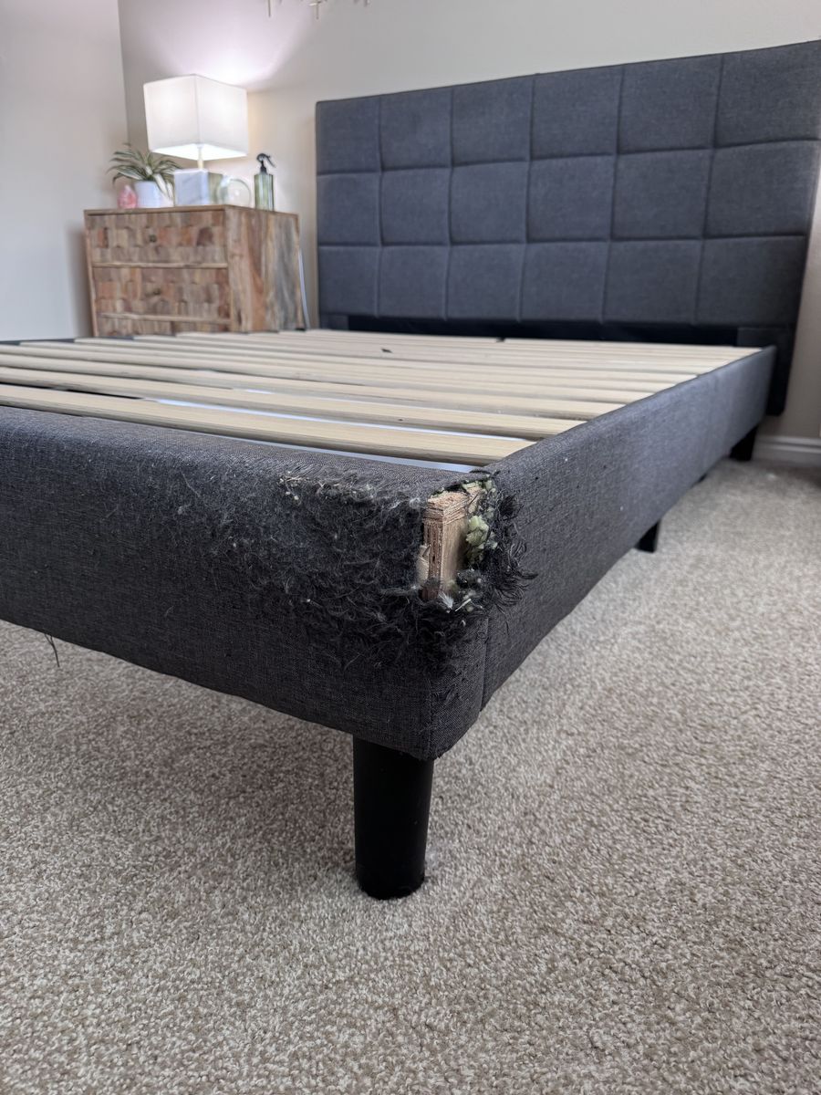 This lived its life in a home with cats and you can see their artistic work on display. Great for if you already have cats, they can’t ruin it any more than it already is lol