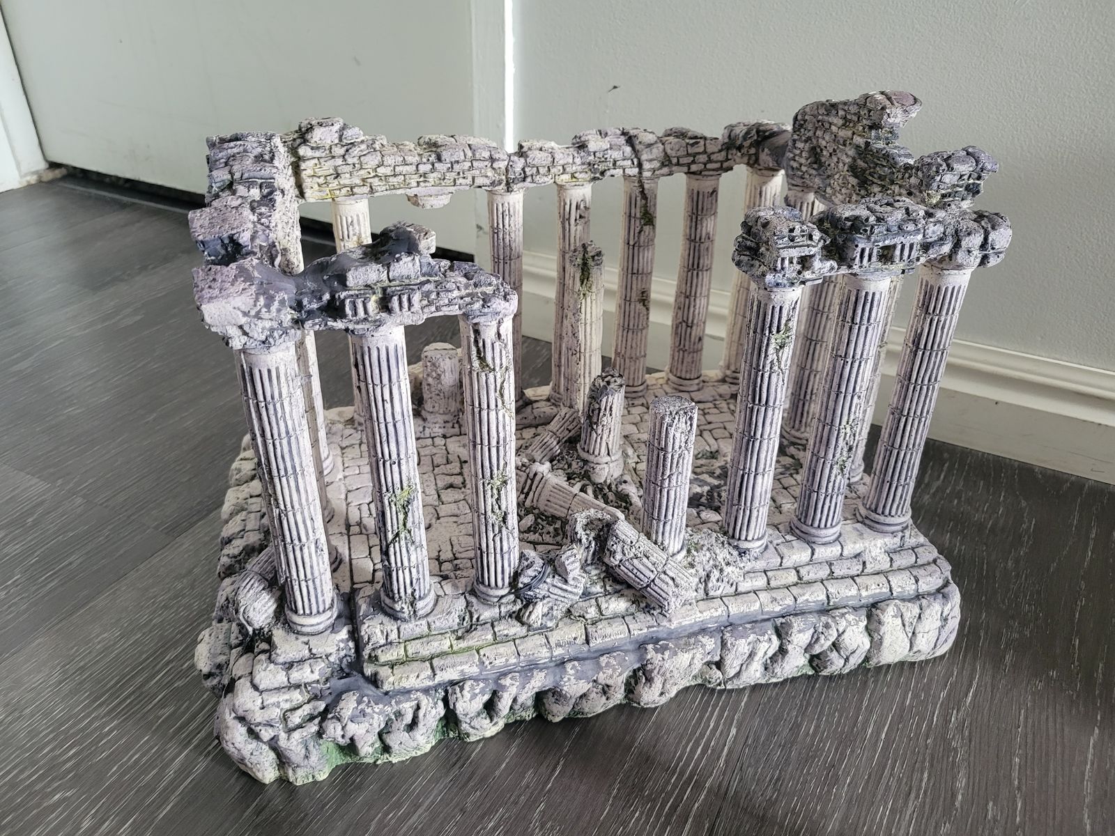 Greek Parthenon Acropolis Roman Ancient Ruins Columns Aquarium Large Fish Tank Decoration Ornament 16in W x 11in D x 10in H Center has holes for bubbles... Bubble device not included ($45)