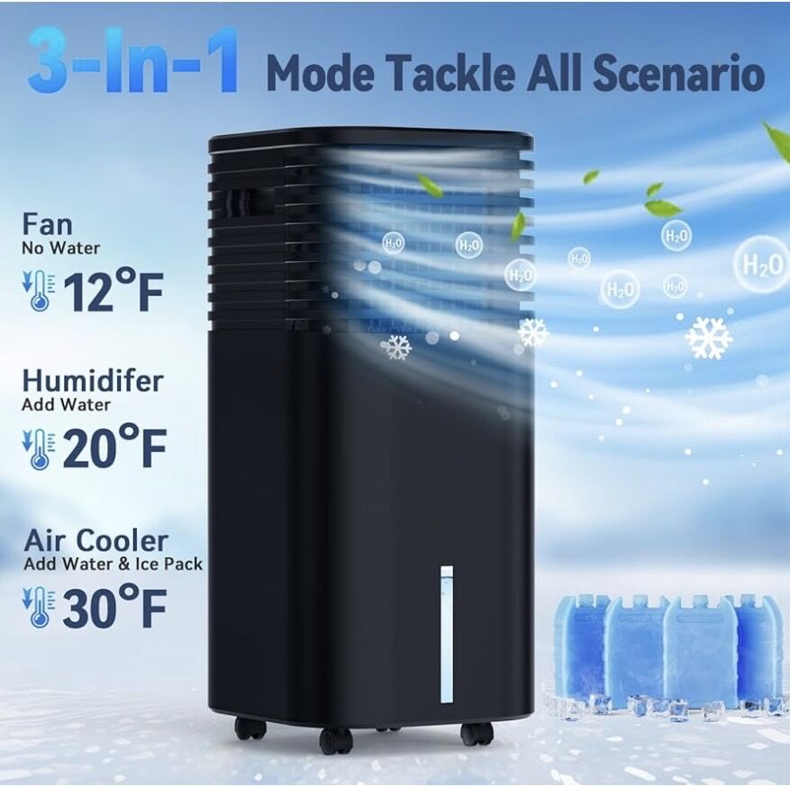 VenmoWindowless Portable Air Conditioner With 4 Modes & 3 Speeds, 15 Hour Timer For Smart Auto Off, 2 Gal Tank For 20 Hour Cooling, Evaporative Air Cooler 17 FT Remote, 120 Deg Swing Swamp Cooler, No Hose Needed Brand New In Box Cash Preferred Will Accept Venmo Pick Up In Roy