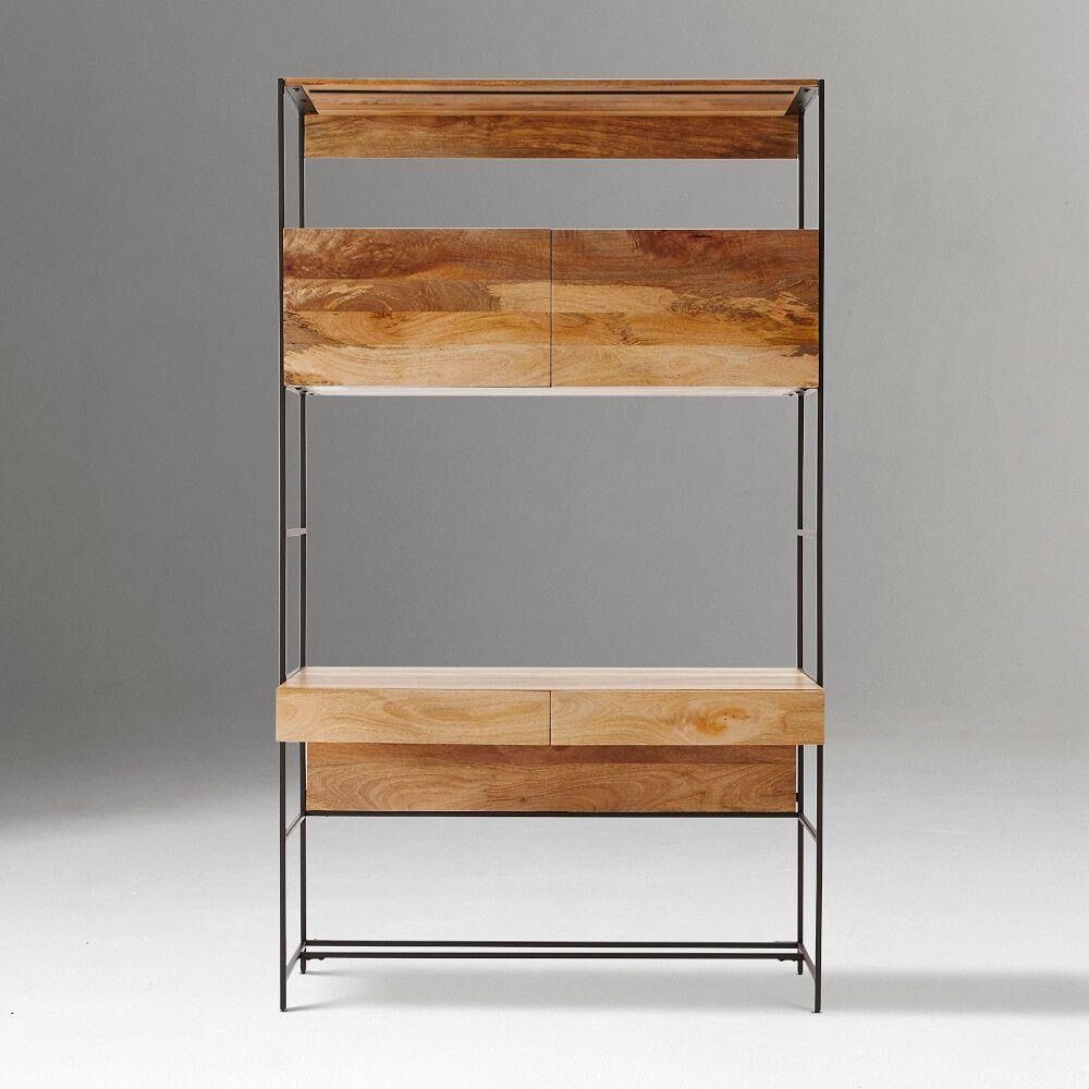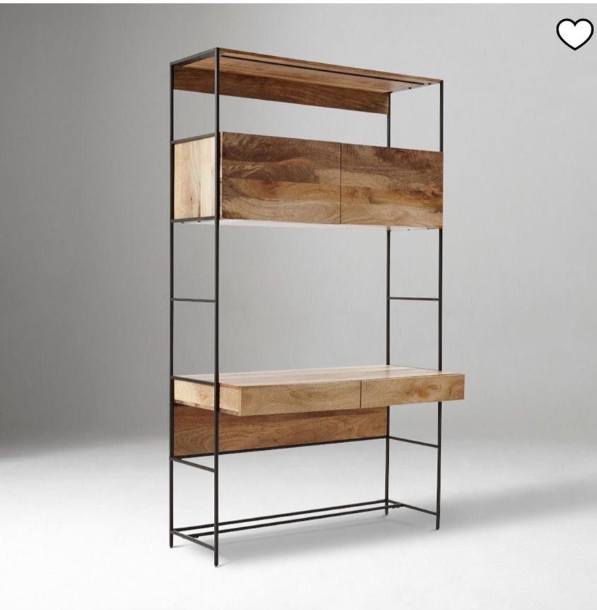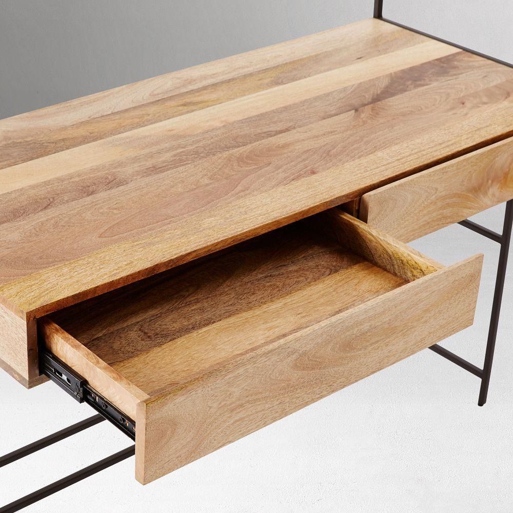 West Elm Industrial Modular Wall Desk in Raw Mango wood with black metal frame. Originally $1,699.