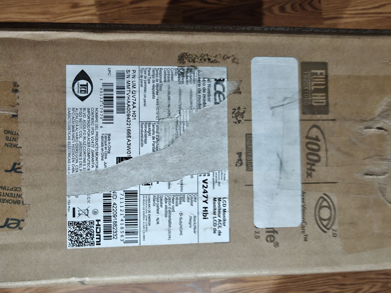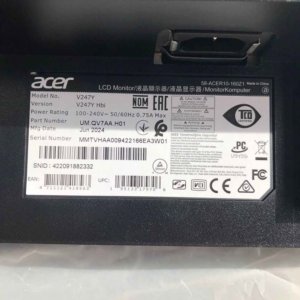 New open box Acer Vero V247Y ups LCD Monitor 16:9 Black 23.8" 250 Nit 4 ms 120hz HDMI VGA with Integrated Speakers