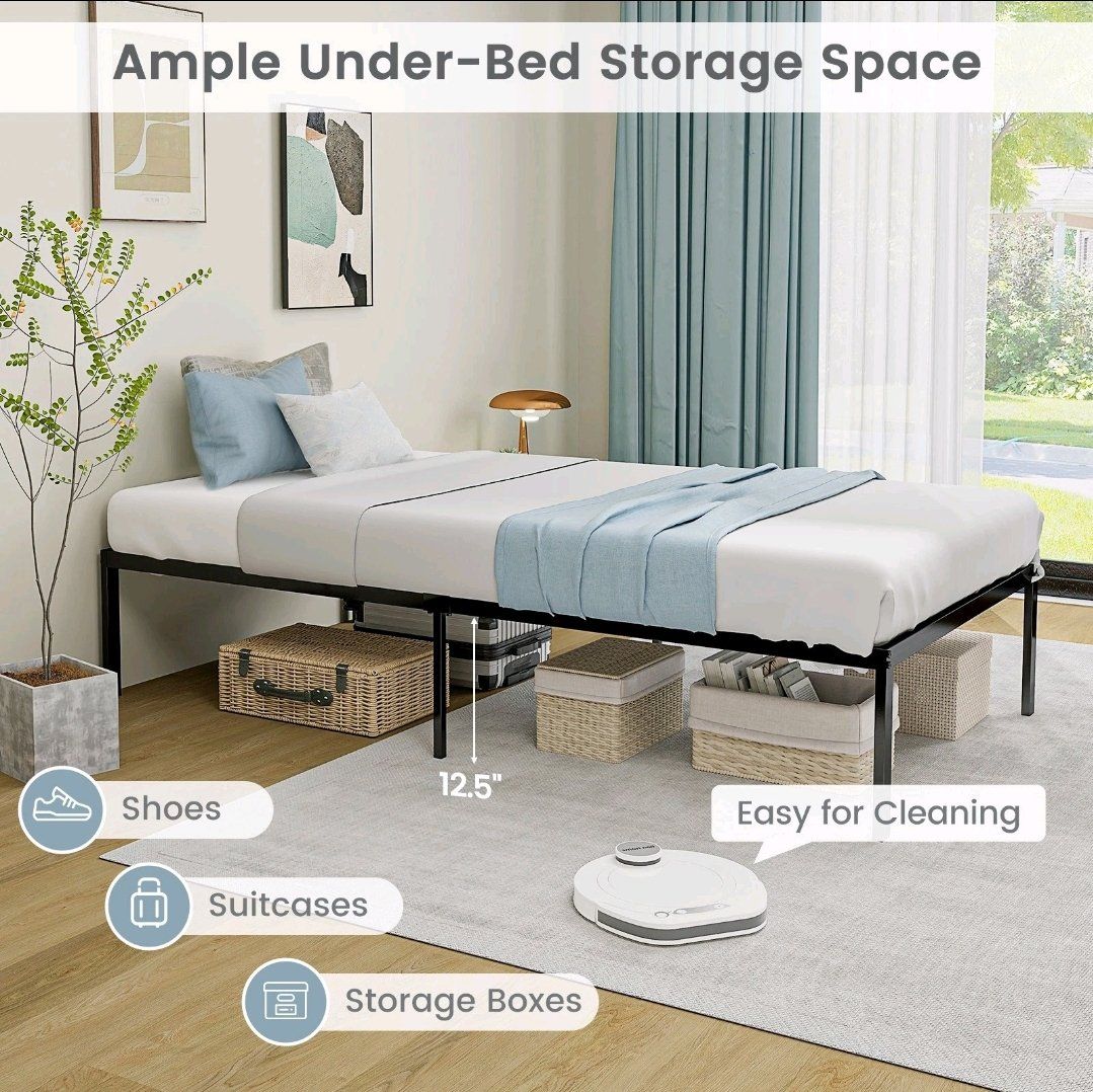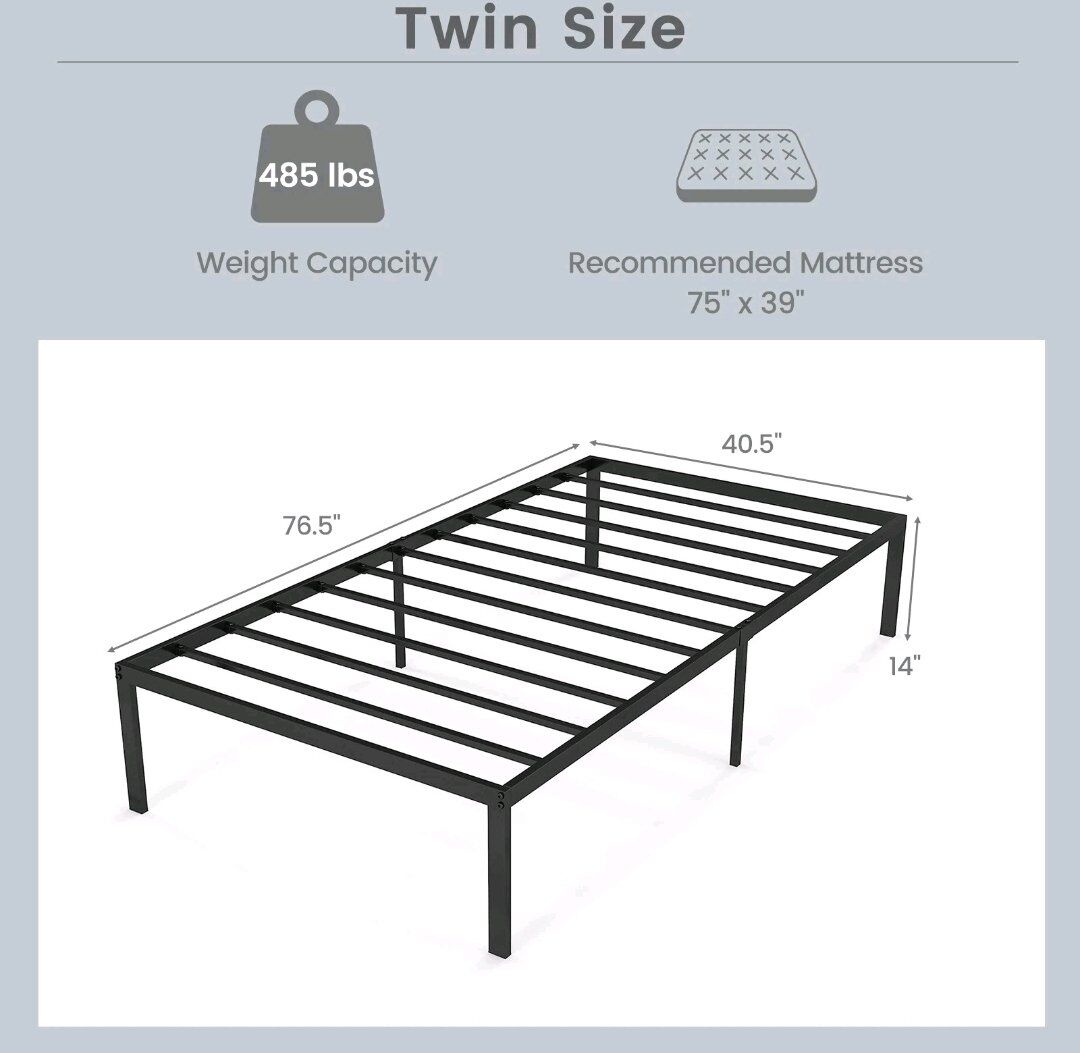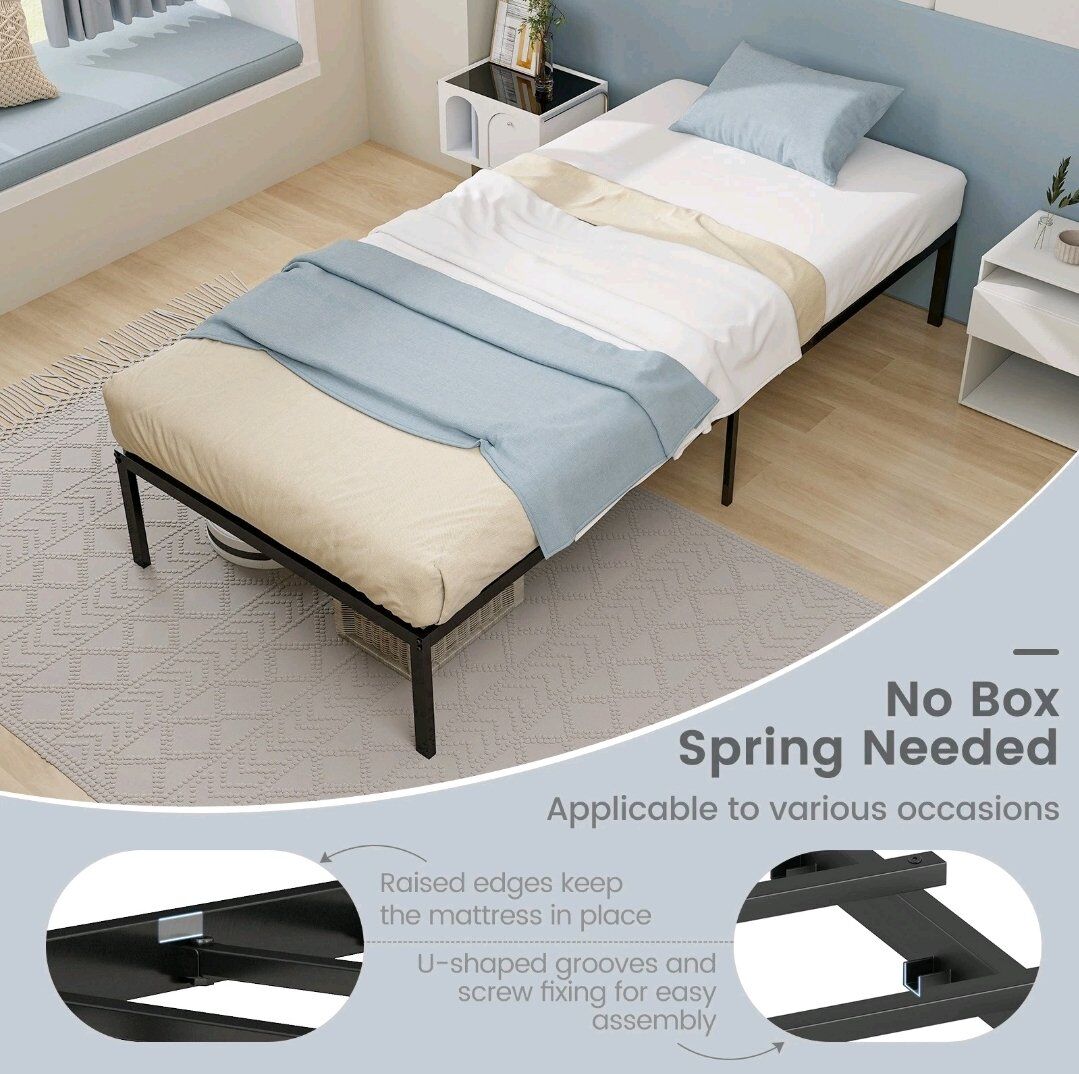 Venmo14 Inch Heavy TWIN Duty Metal Platform Bed Frame Steel Slat Mattress Foundation Black
