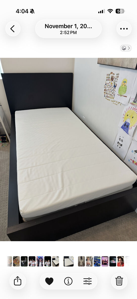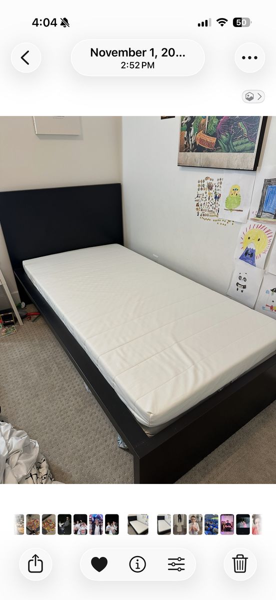 ApplePayBlack wood twin bed frame from Ikea. In great condition! Has two thin mattresses included too! Comes from a non smoking, non pet house.