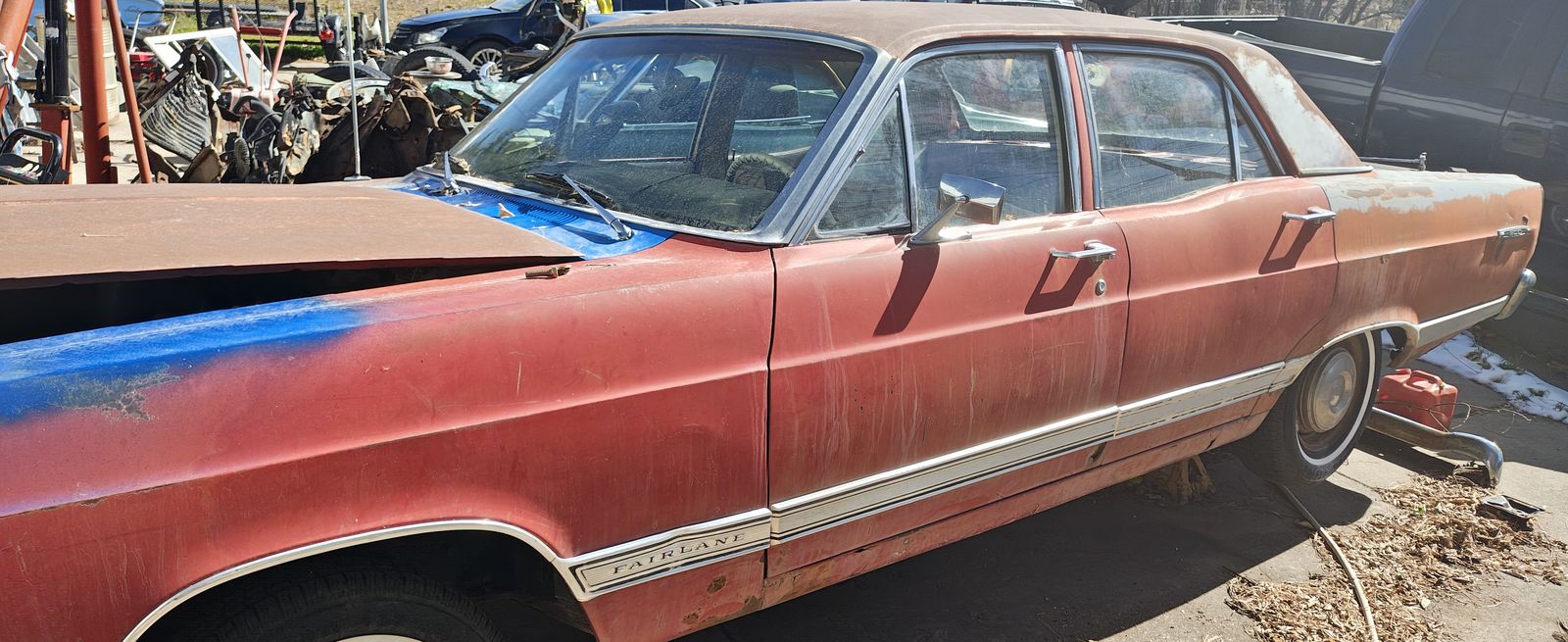 Four-door 1967 Fairlane 500. 200 6 cylinder three on the tree, new coil springs new leaf springs shocks new tires new brakes pointless distributor new carburetor new timing chain and gears newly painted motor motorbay halfway cleaned up for paint still needs some work