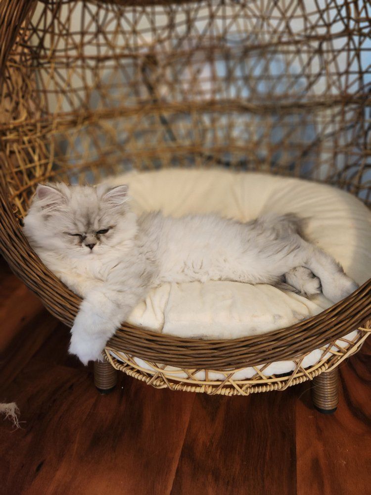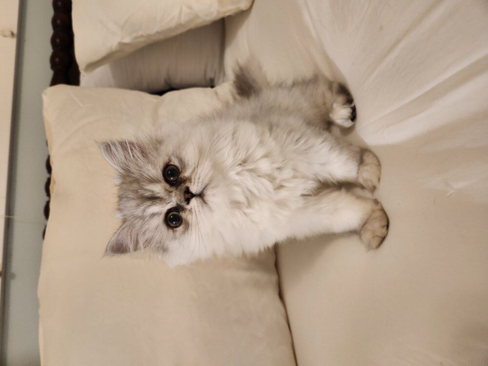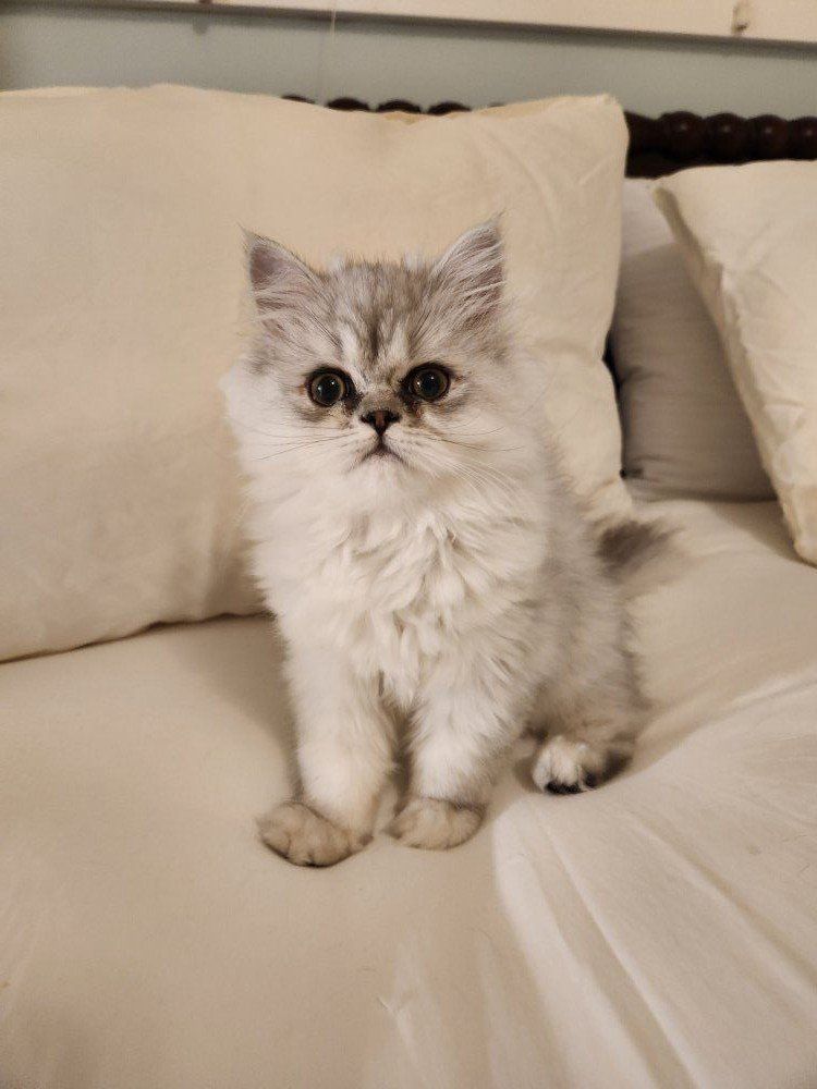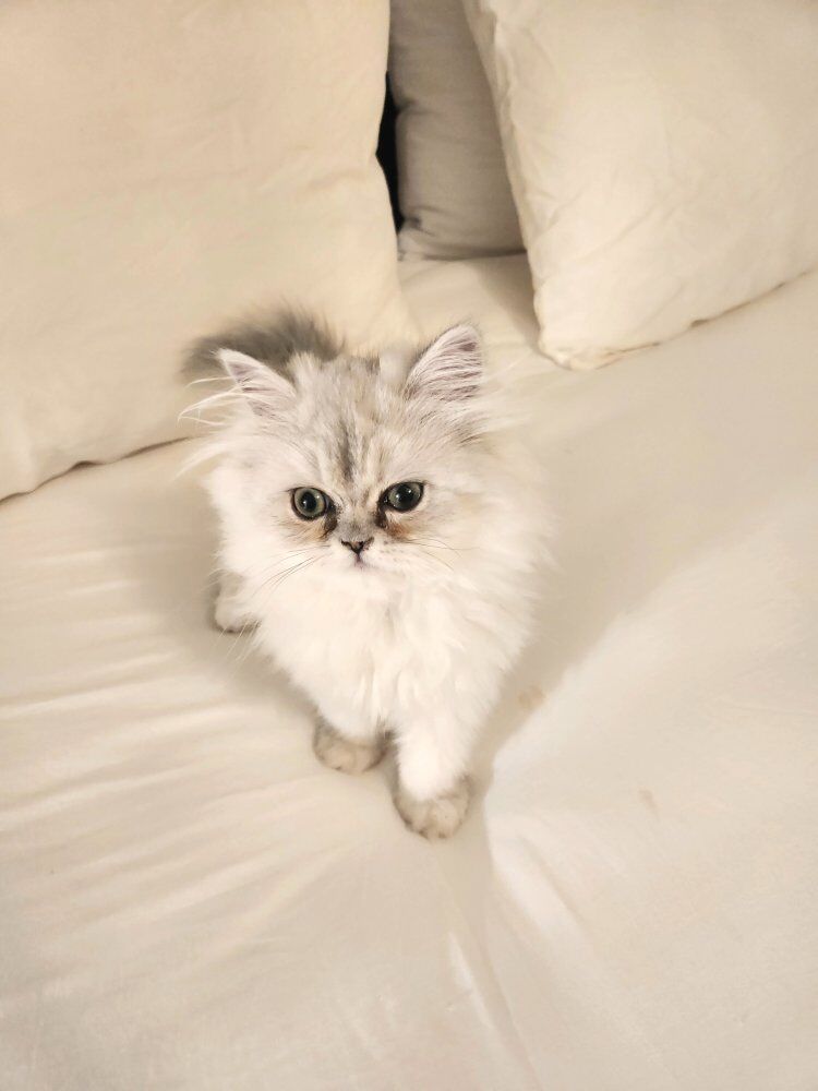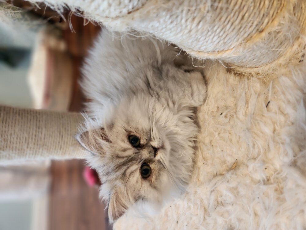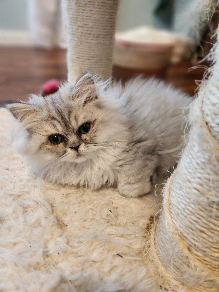 Zelle2 kittens available for their new forever homes, both little girls. Litter trained, loving, and exceptionally beautiful. Both have green eyes and the special chinchilla black "eyeliner". Raised with lots of love in a clean home. Going home care package included.