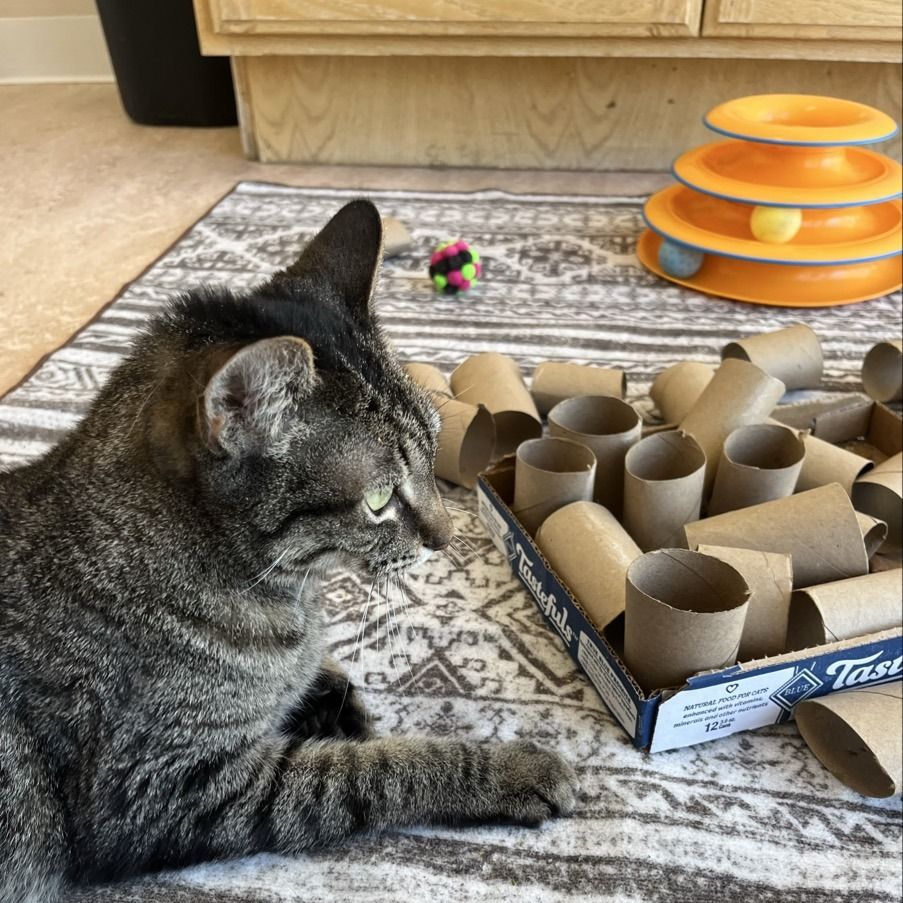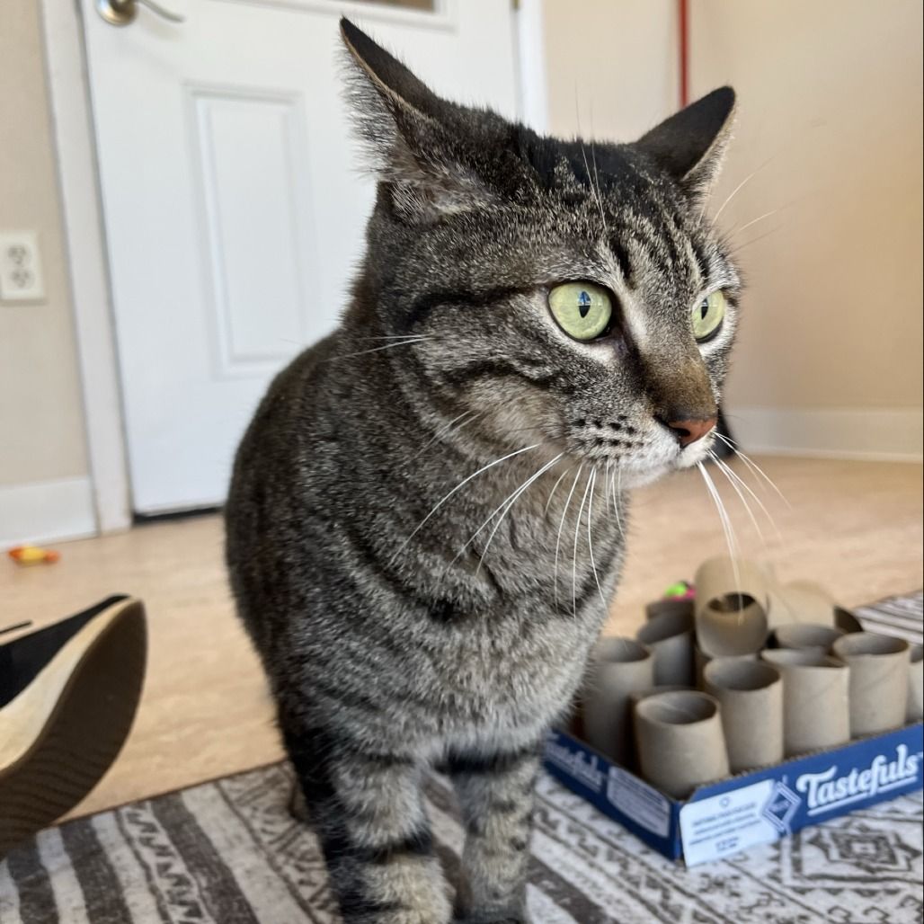 Meet Eeyore, the sweetest girl with the prettiest pink nose! She comes off reserved and very "chill", but once warmed up, she's a total lap lady! She really is a people's cat, her personality shines through the moment you're in the room with her. When not with her humans, she is found lounging around, often sunbathing and watching the world curiously go by around her. She's ready to be the perfect lovebug! I am currently at our Whisker and Bone location in St. George, come meet me there!