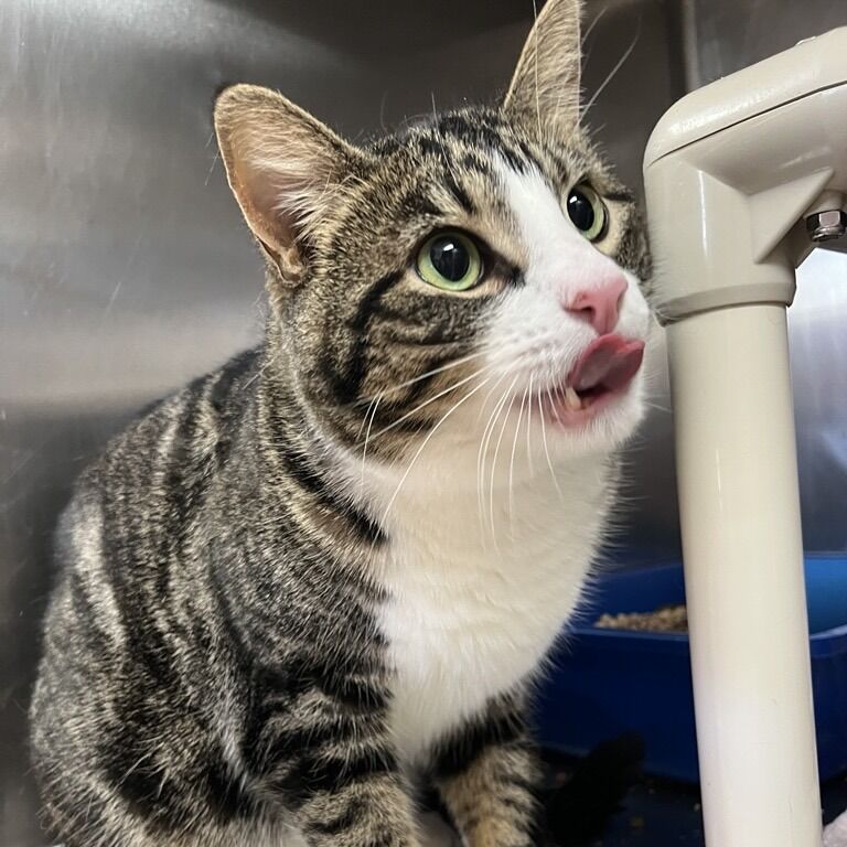 Huxley is a 3-year-old white and brown tabby gentleman with effortless style. Thanks to his unique markings, it looks like he’s always dressed to impress — his coloring forms the perfect little “vest,” giving him that business-casual-meets-cozy vibe. But don’t let the sharp outfit fool you — Huxley is the definition of a chill guy. He’s easygoing and content lounging nearby while you go about your day. Whether he’s stretched out in a sunny window or supervising from the couch, Huxley brings a calm vibe to the room. At just the right age, he’s past the wild kitten phase but still young enough to enjoy playtime and exploration. He’d make a wonderful companion for someone looking for a relaxed, stylish sidekick who’s equal parts handsome and mellow.