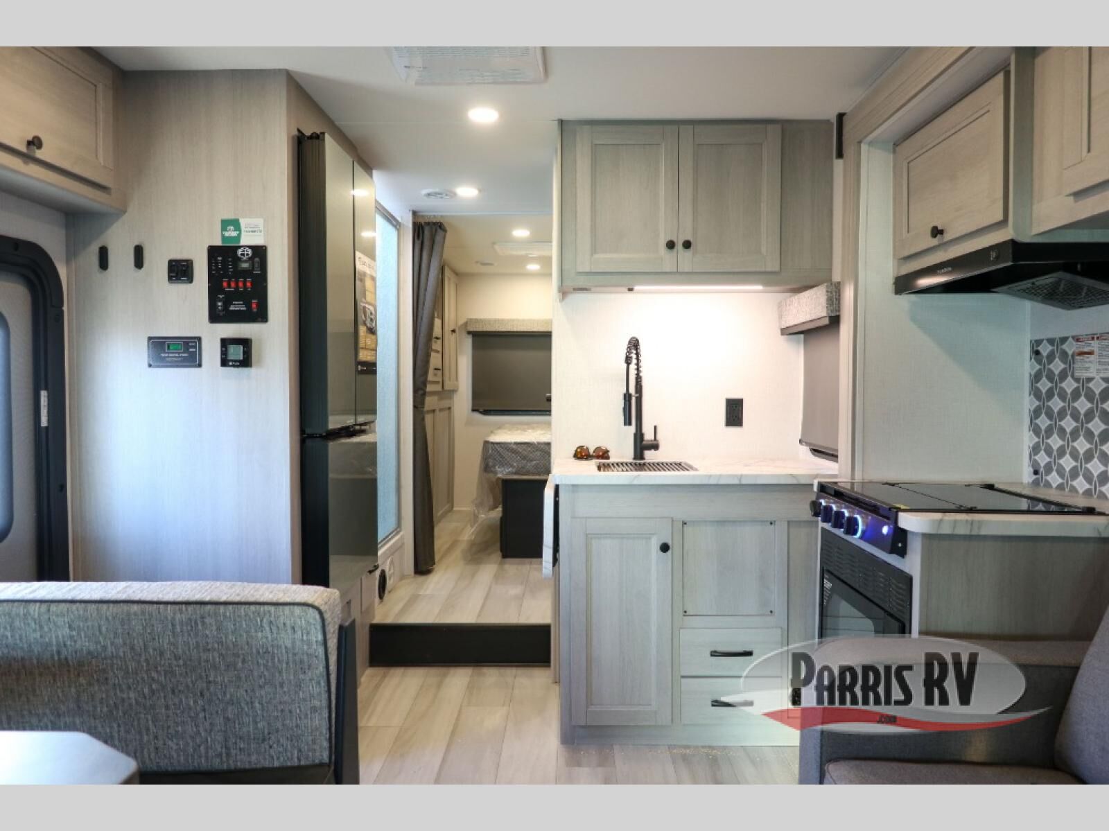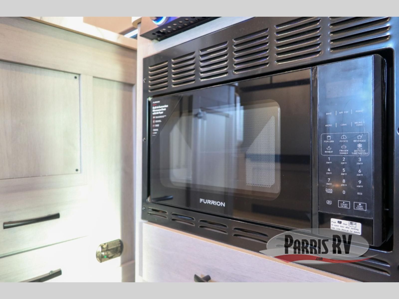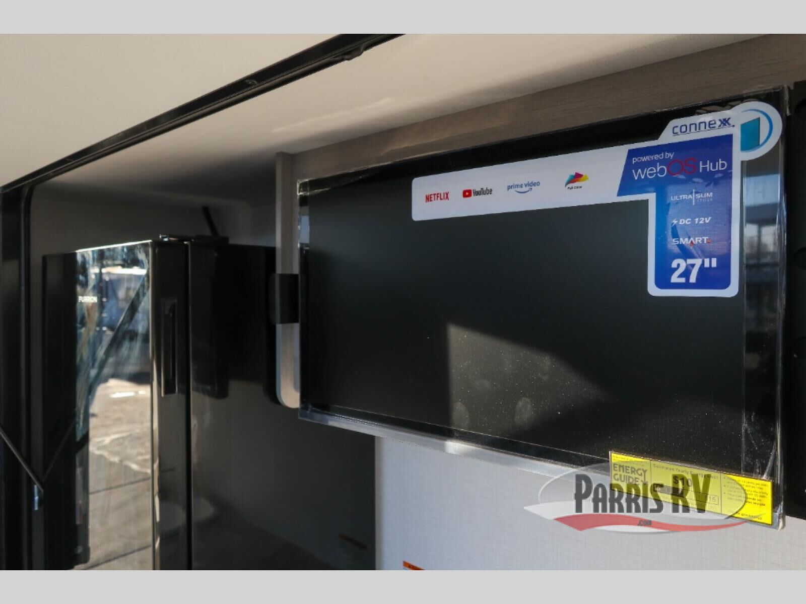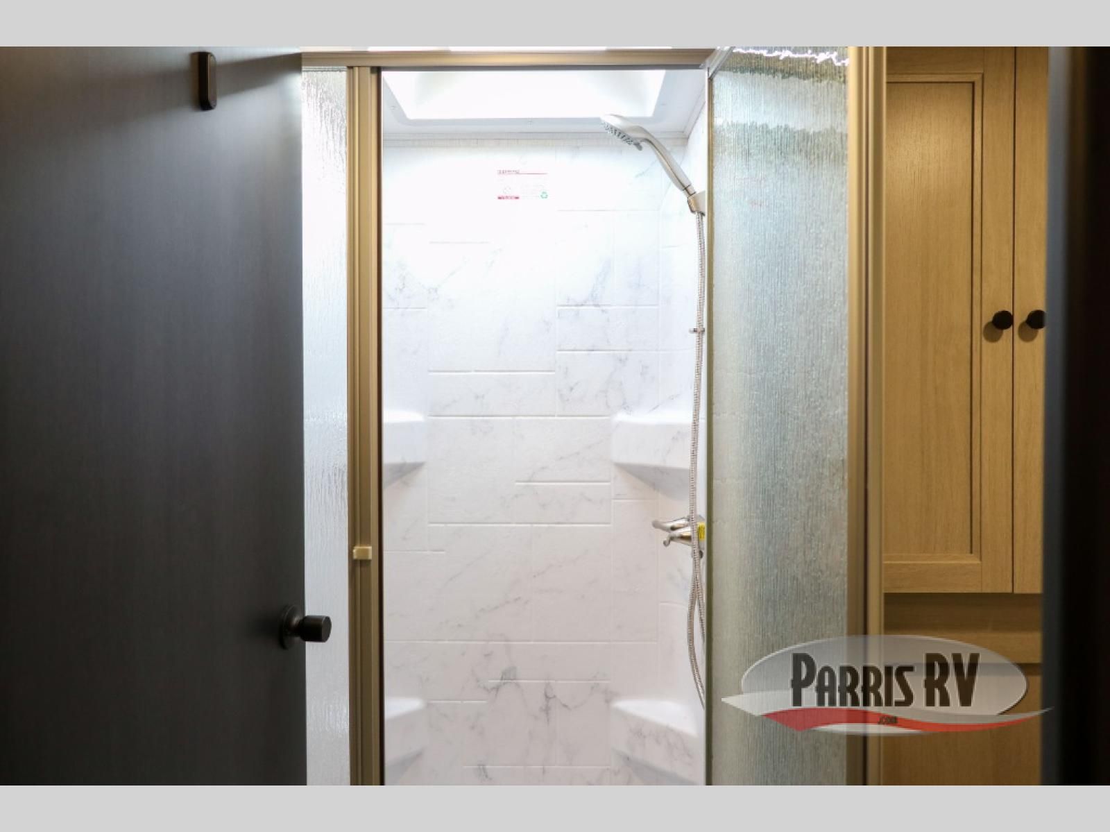 Pack your bags and pick your favorite destination then head out in this motorhome! The rear private bedroom has a 60" x 74" queen bed slide for more interior space, and a linen closet with wardrobes on either side of it. There is also a split-style bath with a private toilet and sink, and the shower is right across the hall. Prepare your best home cooked meals using the three burner cooktop, enjoy dining at the booth dinette, and store any leftovers in the 10.7 cu. ft. 12V refrigerator. You will also appreciate the outside kitchen with a refrigerator and cooktop plus an outside TV to watch the big game. Relax each evening on the sofa slide out, or you can replace it for the optional power theater seating. There is even a 60" x 80" bunk over the cab for extra sleeping or storage space!