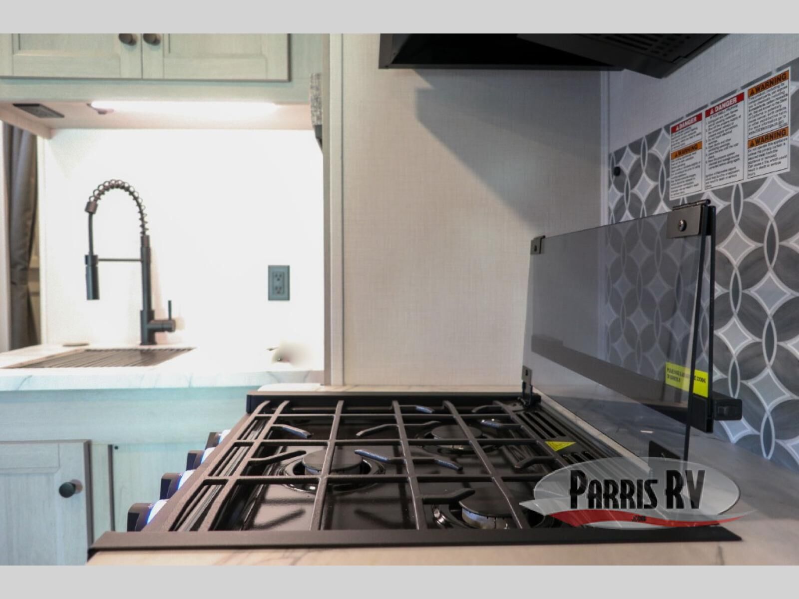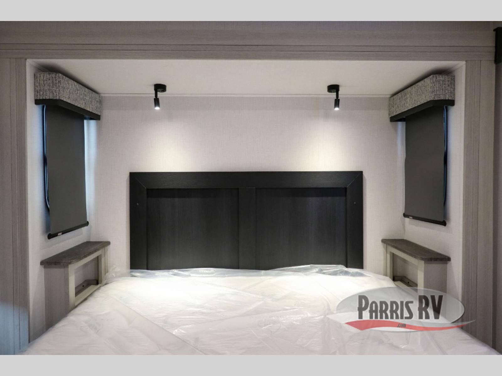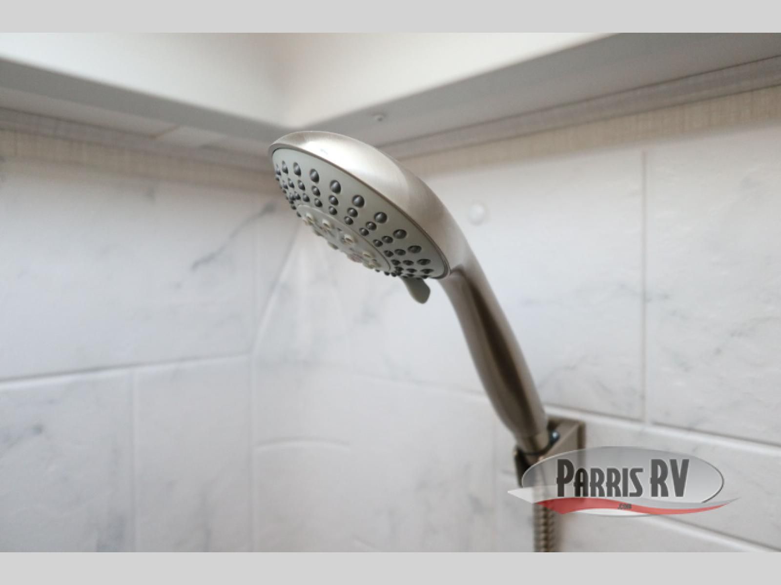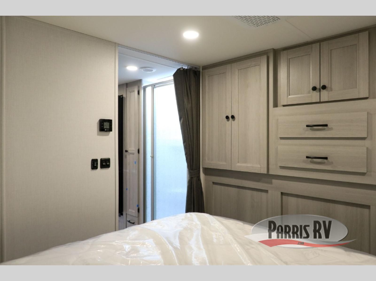 Pack your bags and pick your favorite destination then head out in this motorhome! The rear private bedroom has a 60" x 74" queen bed slide for more interior space, and a linen closet with wardrobes on either side of it. There is also a split-style bath with a private toilet and sink, and the shower is right across the hall. Prepare your best home cooked meals using the three burner cooktop, enjoy dining at the booth dinette, and store any leftovers in the 10.7 cu. ft. 12V refrigerator. You will also appreciate the outside kitchen with a refrigerator and cooktop plus an outside TV to watch the big game. Relax each evening on the sofa slide out, or you can replace it for the optional power theater seating. There is even a 60" x 80" bunk over the cab for extra sleeping or storage space!