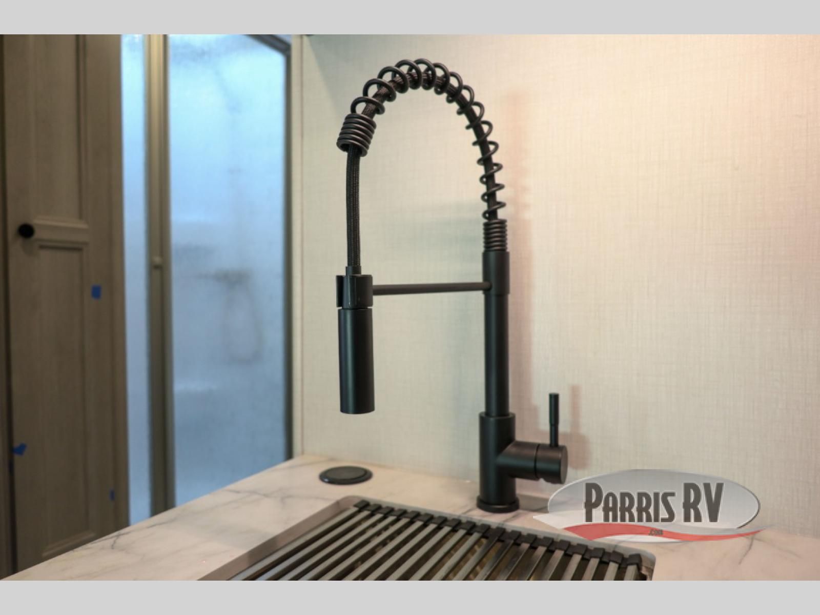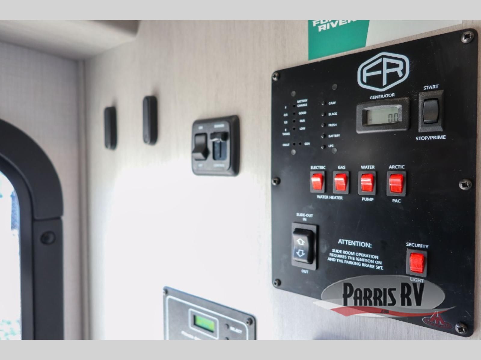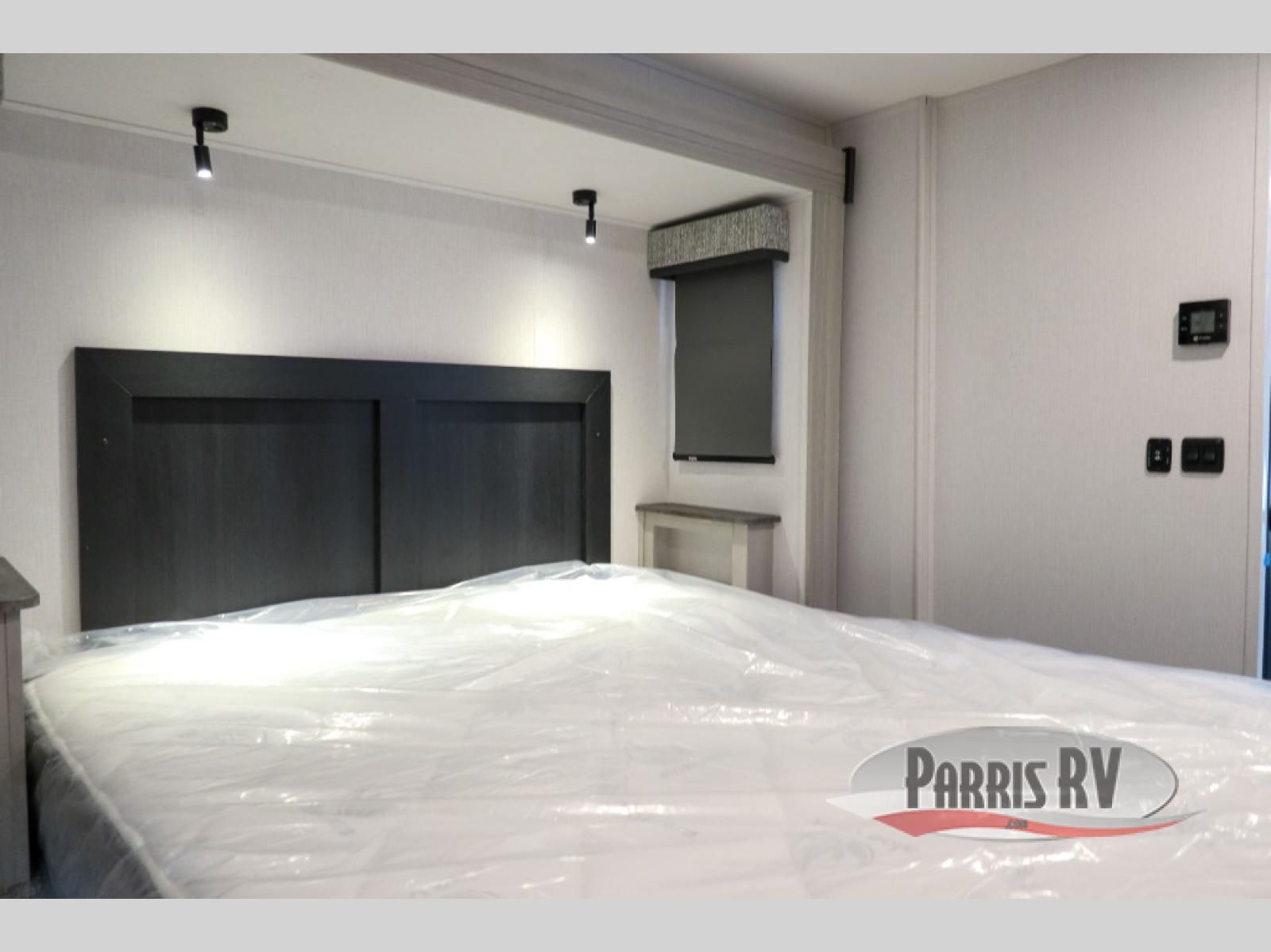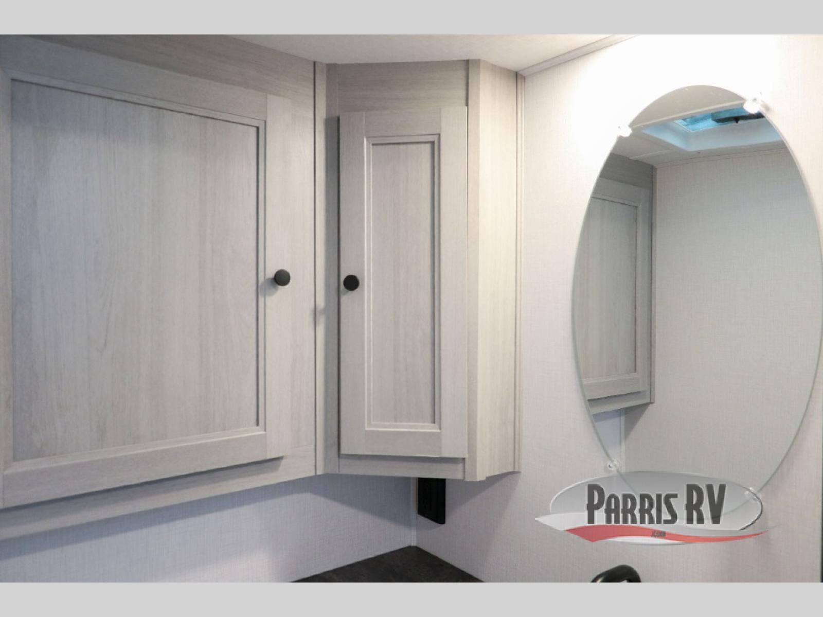 Pack your bags and pick your favorite destination then head out in this motorhome! The rear private bedroom has a 60" x 74" queen bed slide for more interior space, and a linen closet with wardrobes on either side of it. There is also a split-style bath with a private toilet and sink, and the shower is right across the hall. Prepare your best home cooked meals using the three burner cooktop, enjoy dining at the booth dinette, and store any leftovers in the 10.7 cu. ft. 12V refrigerator. You will also appreciate the outside kitchen with a refrigerator and cooktop plus an outside TV to watch the big game. Relax each evening on the sofa slide out, or you can replace it for the optional power theater seating. There is even a 60" x 80" bunk over the cab for extra sleeping or storage space!