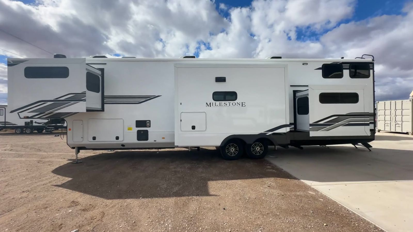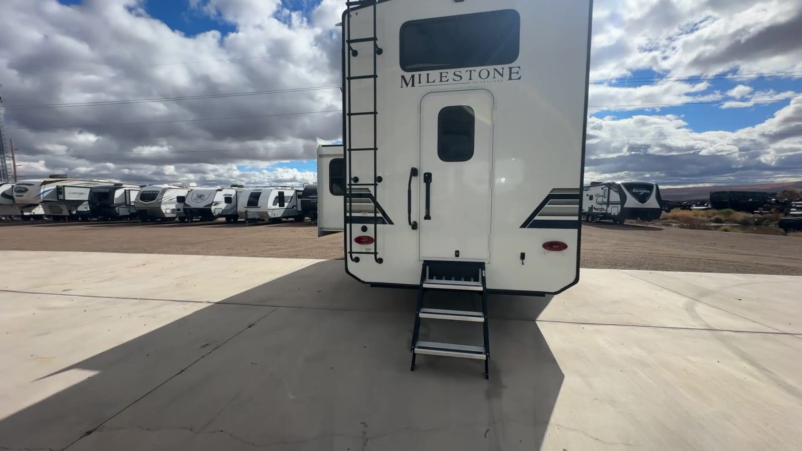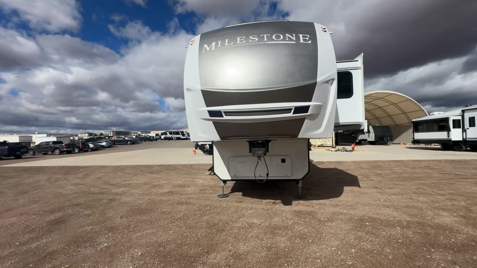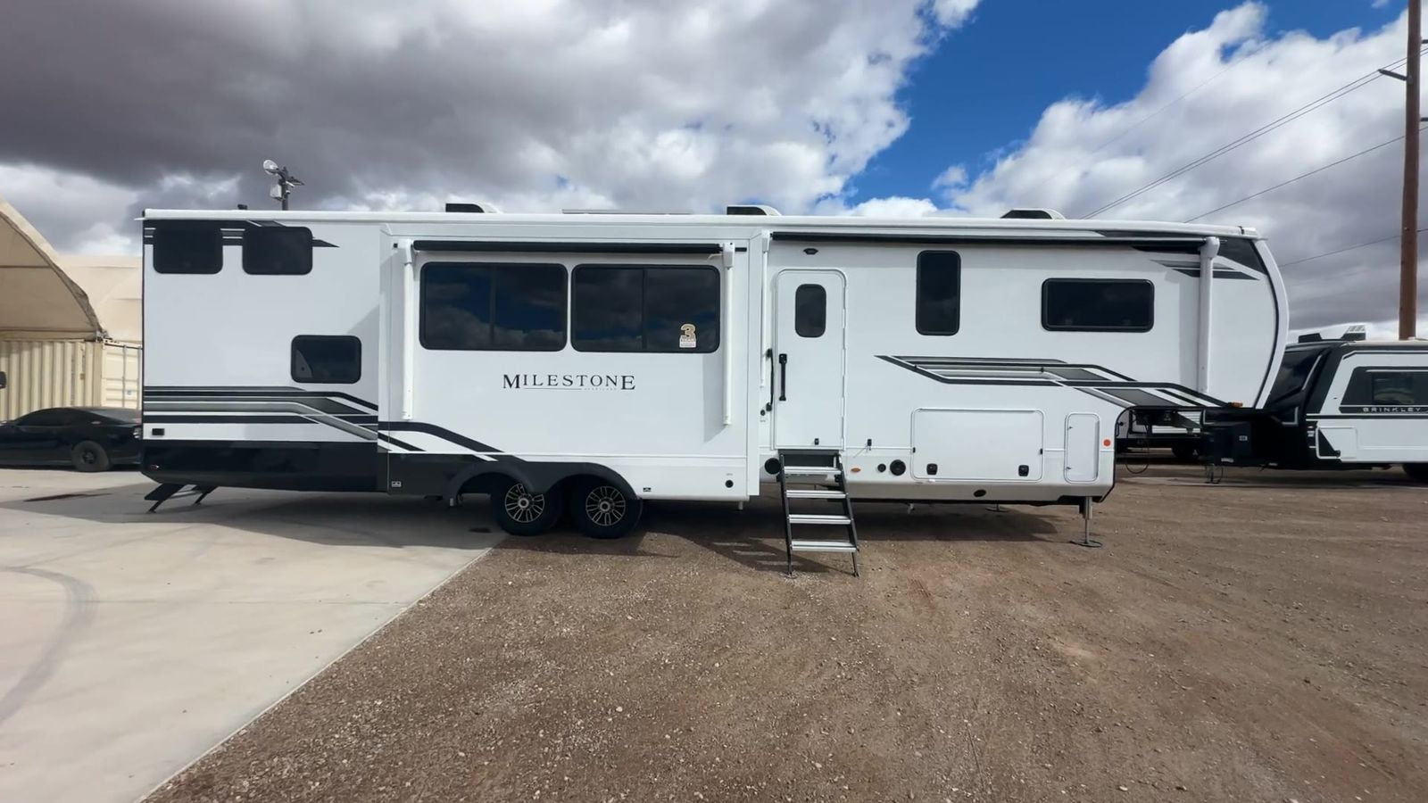 Heartland Milestone fifth wheel 39TB highlights: Loft 4K Smart LED HDTV Island Table Hidden Pantry You'll be shocked with how many people can travel in full luxury with this Milestone fifth wheel! There are dualprivate bedrooms featuring aking-size bedin the front bedroom and a queen-size bed in the rear bedroom so you and your guests can have their own space. Use the loft for added sleeping space for the kiddos! This RV also has two full bathrooms on each end so it is of easy access, also, the rear bathroom has its own exterior entrance! The kitchen has all the counter space you will need to prepare your everyday meals, after cooking you can enjoy your creation at the island table with chairs.There is a super lounger that has all the space you'll need to enjoy quality time with all of your guests!Enjoya wonderful design featuring dual opposing slides that will make for the real residential experience and make the most out of your travel. The Heartland Milestone is a full-profile luxury fifth wheel that is ready to help you make the most of your adventures! You will find aTrussTXL Roof System with Alpha roof membrane system offering quality exterior protection,and thePower Up Solar that includes a200 watt solar panelwill let you go off-grid when the adventure calls for it. The upgradedMORryde Step Above entrance stepswill help you enter your unit with ease, and the6-point hydraulicauto-leveling systemcomes standard to help you keep your unit secure while camping. The interior kitchen has some great features, like residential solid surface countertopsand alarge farmhouse sink.There are roller night shadesthroughout each unit to have privacy and comfort.