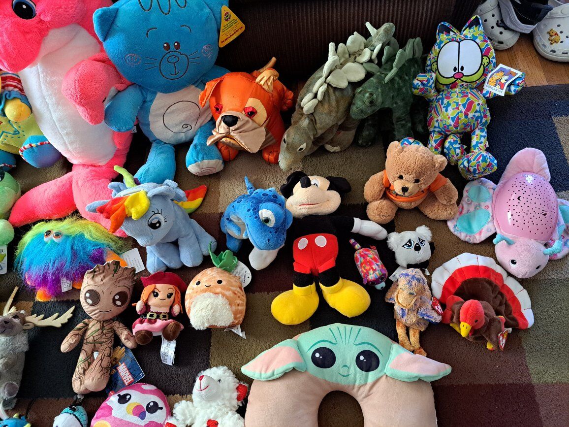 Lots of cute stuffed animals. All different kinds. Some still have tags on them. Some make sounds. These items come from a smoke free home. Please contact me by text.