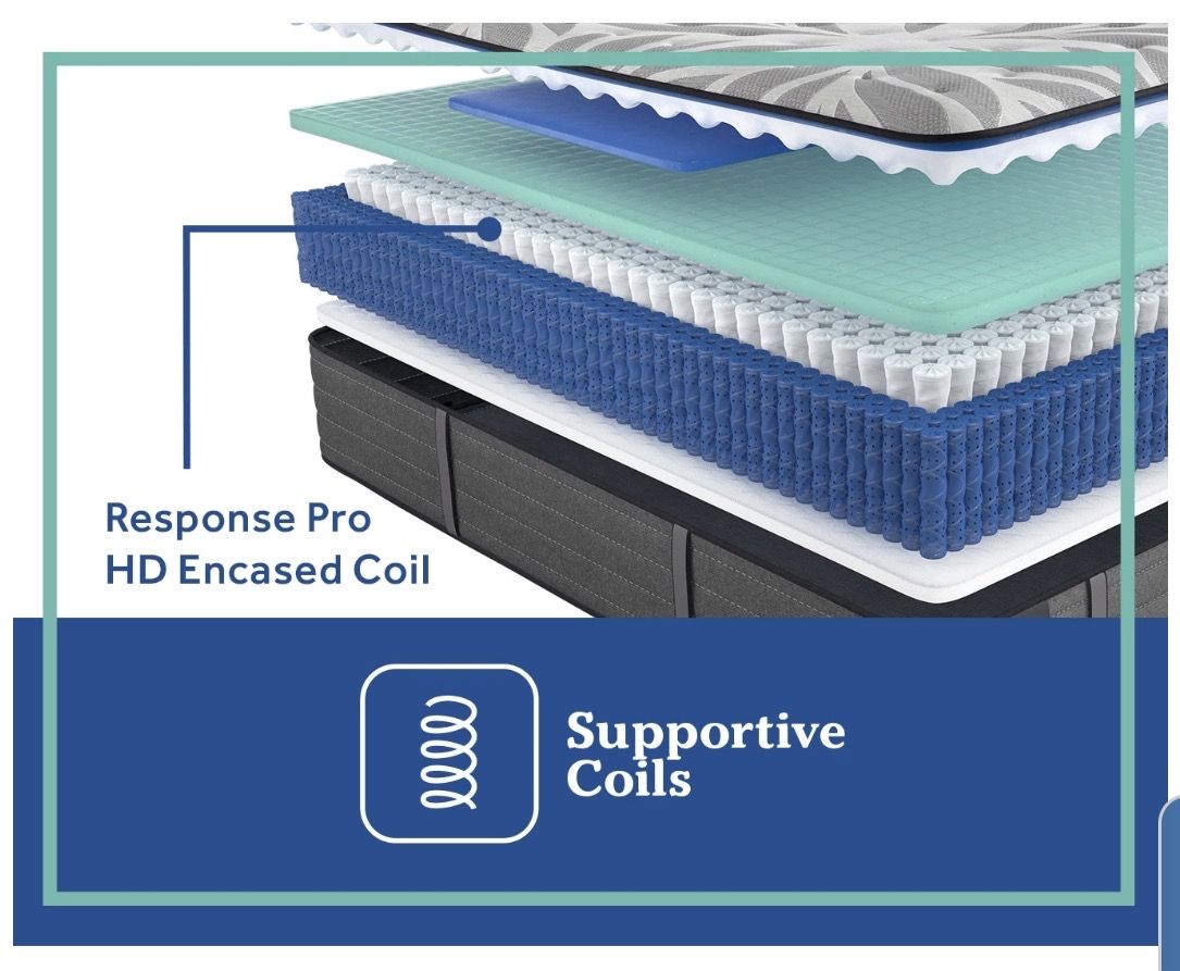 The Sealy Posturepedic Plus line is a range of innerspring mattresses that are at the top end of Sealy. They start at just under $1,000 and the two more entry-level models feature the DuraFlex Edge, 4 vertical handles, and the Sealy Response Pro Encased Coil with zoned support. The higher-end models have the DuraFlex Pro Edge, vertical handles, and the Sealy Response Pro HD Encased Coil with zoning. All the models have varying layers of Sealy's foams that provide different comfort levels.