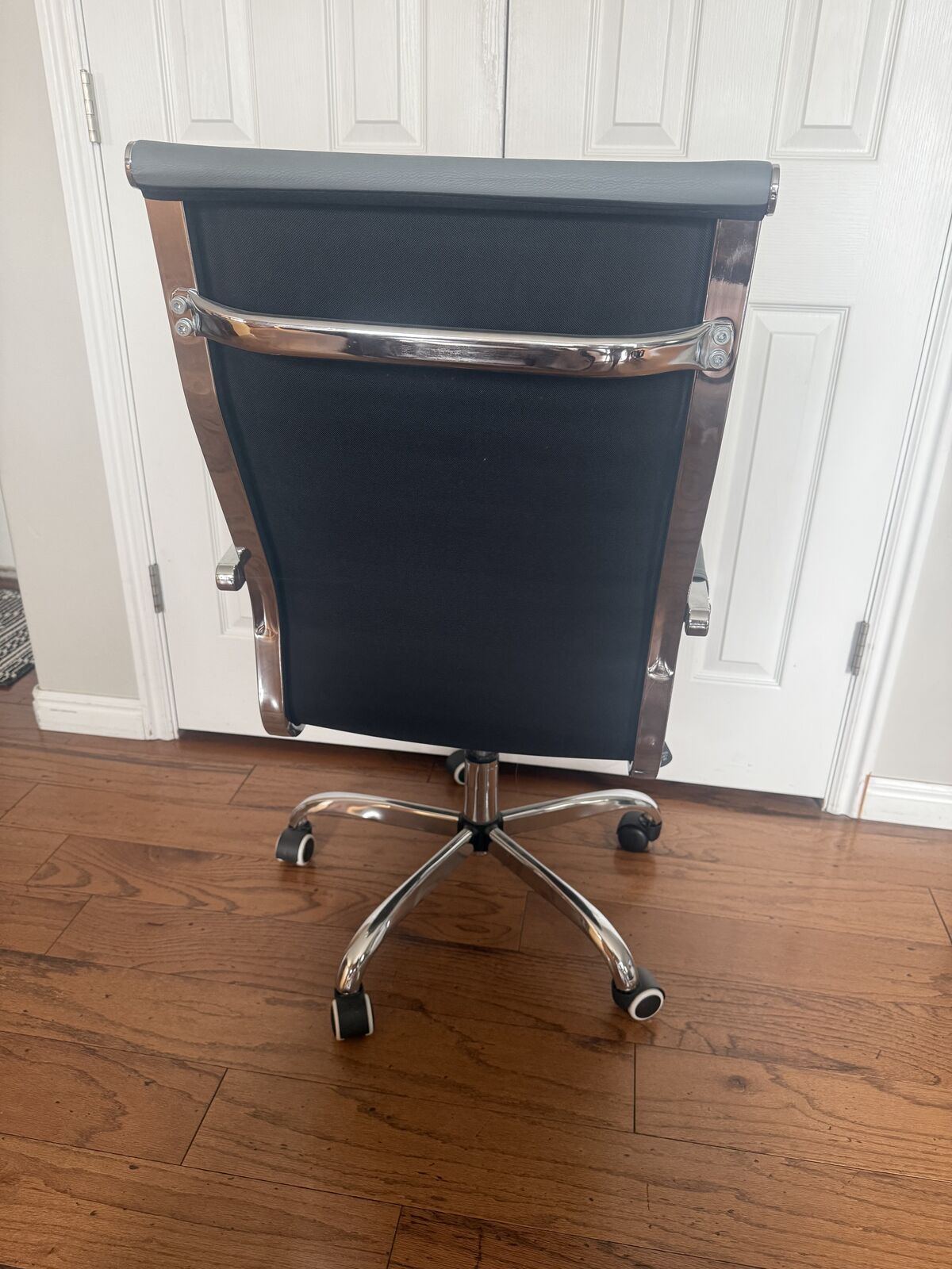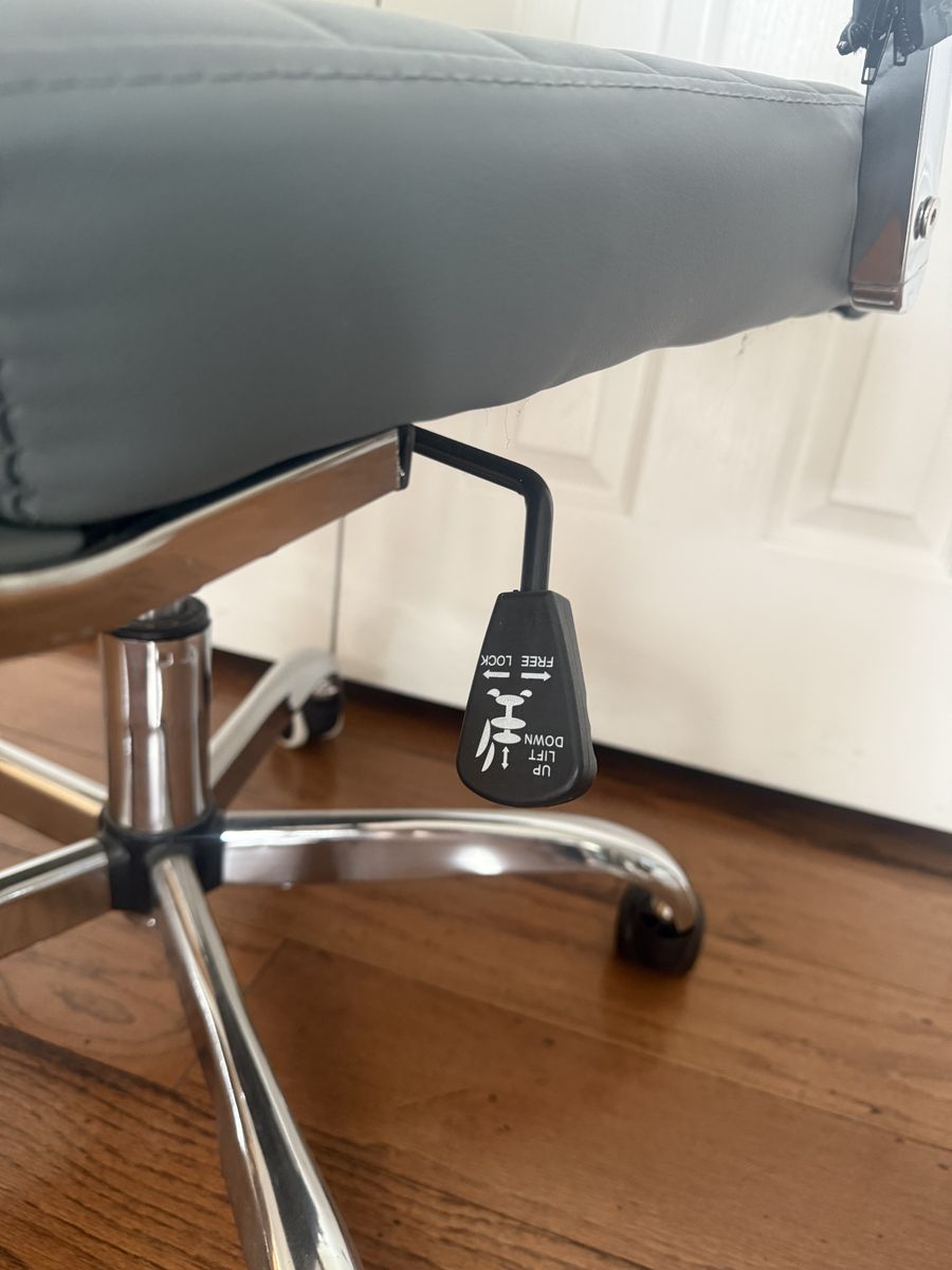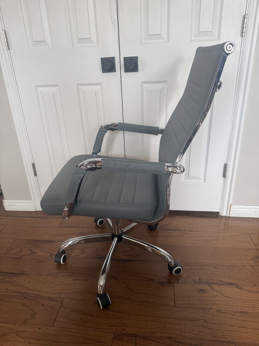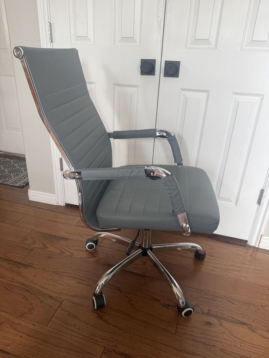 Adjustable gray leather office chair. Still in very good condition.