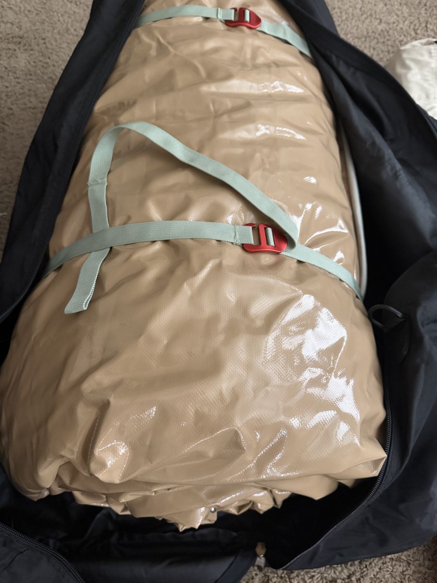 Has not been camped in. Is new but set up to inspect because box was damaged and was missing some parts. Tent is completely flawless, NO issues! Have replaced missing parts so IS a complete setup.