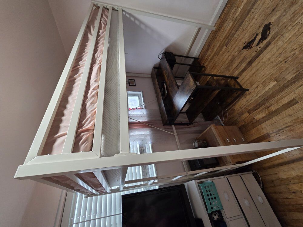 CashAppmetal twin loft bed frame + box spring + mattress included Must pick up. Already disassembled. $80 Obo