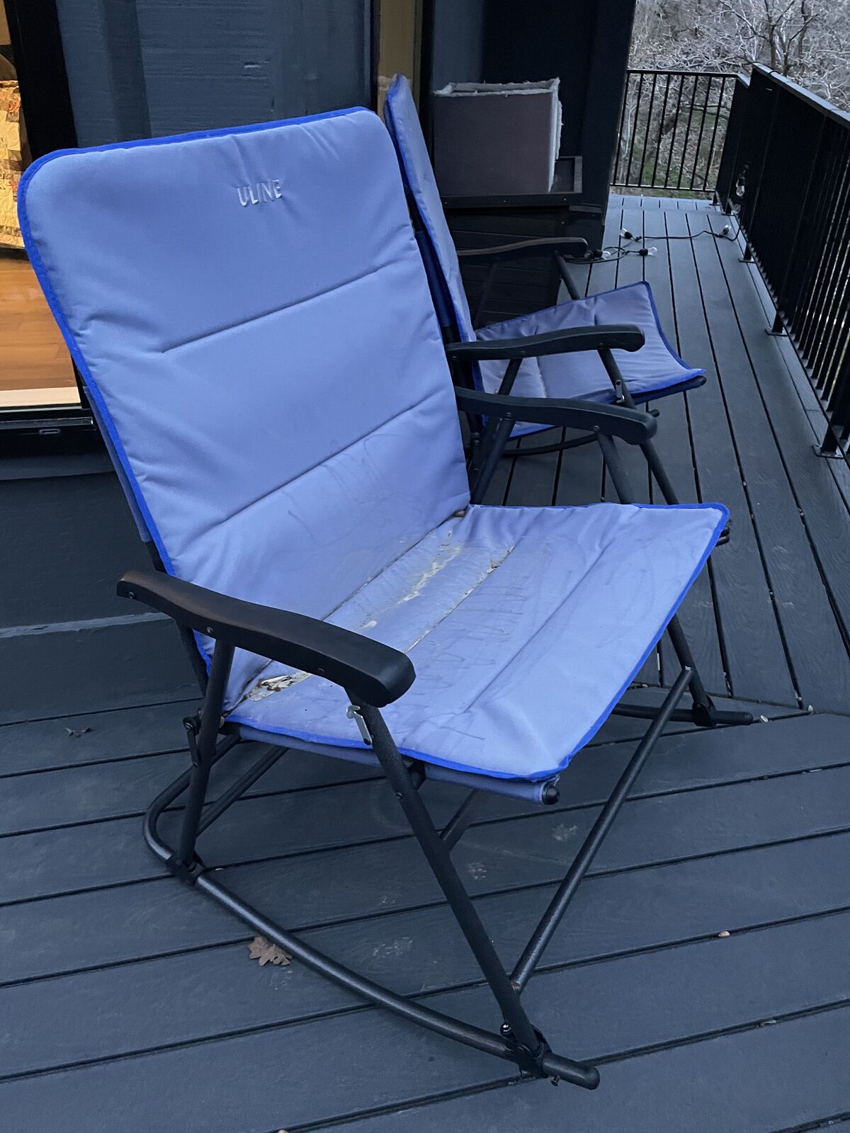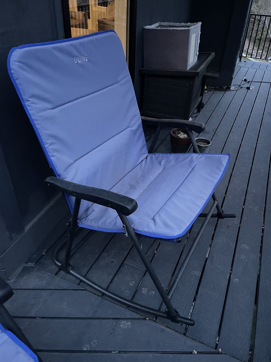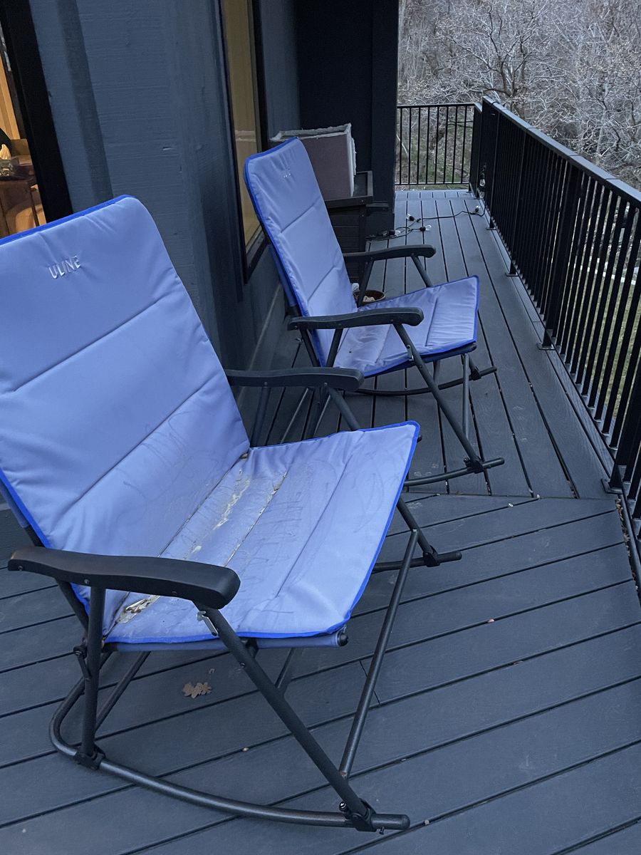 Free outdoor rocking chairs. They collapse, very sturdy. Some cat hair on them, vacuums off easy.