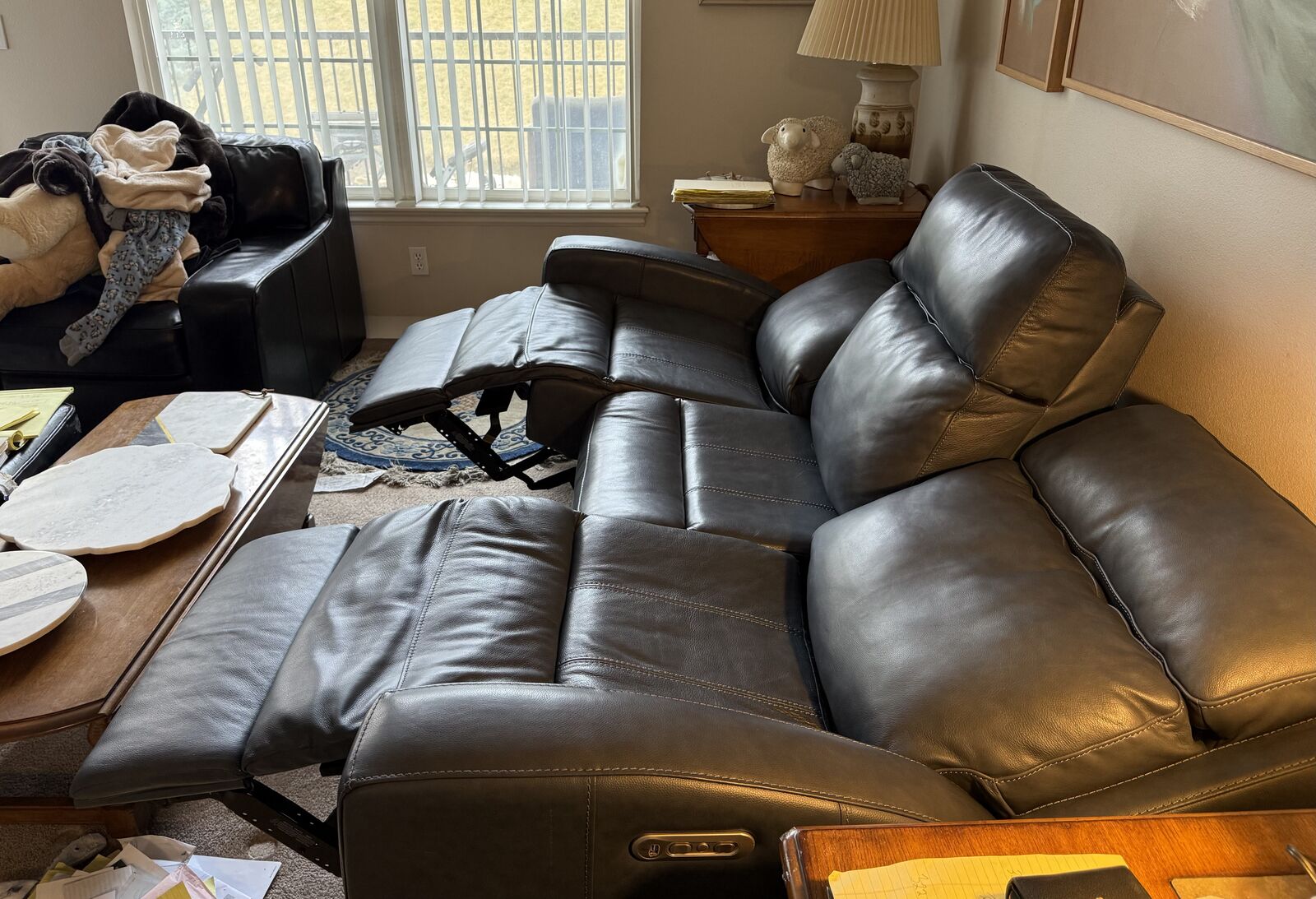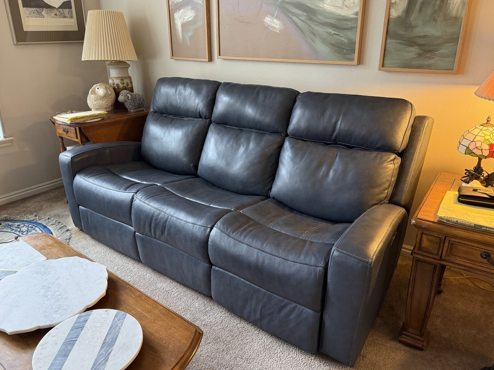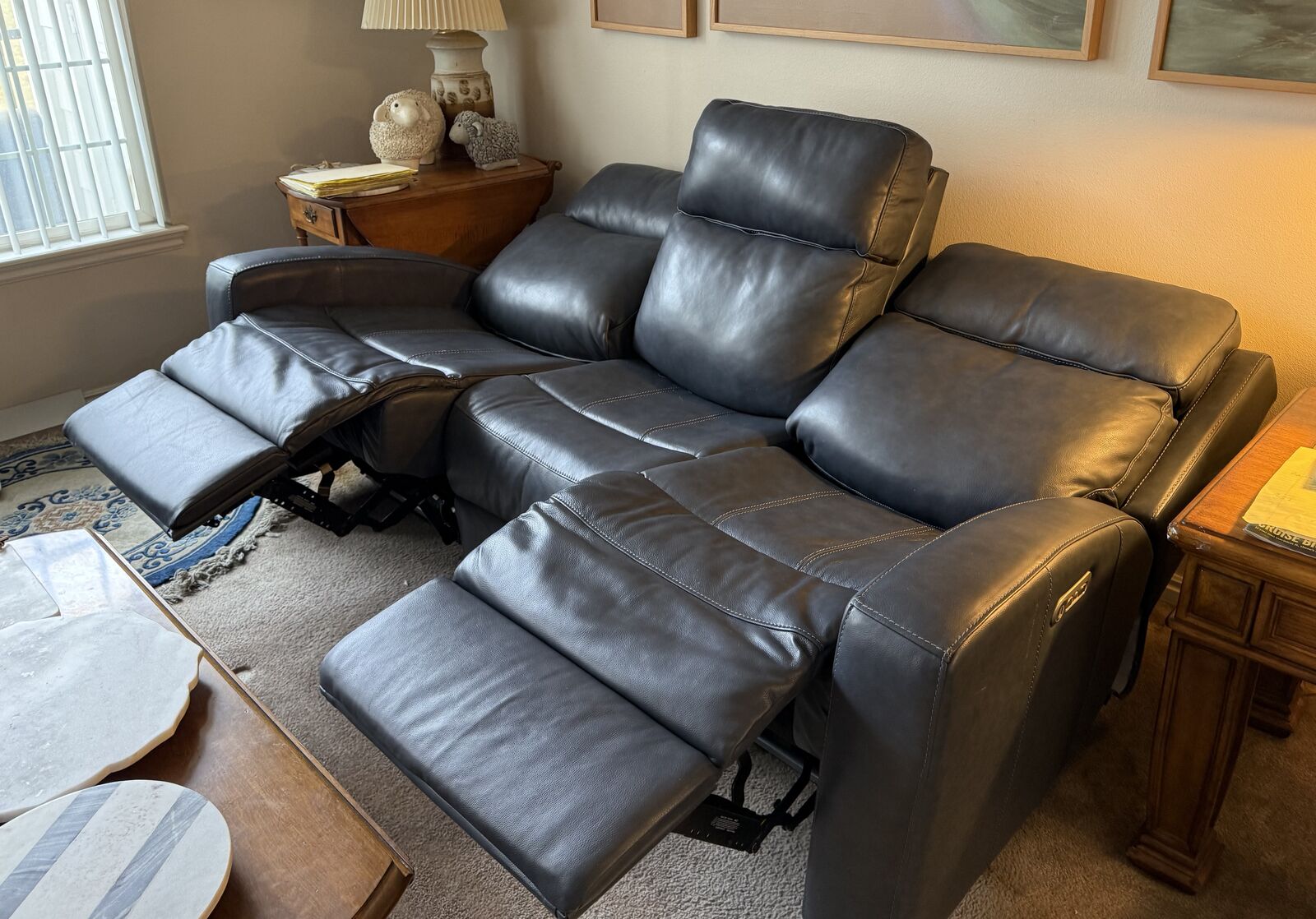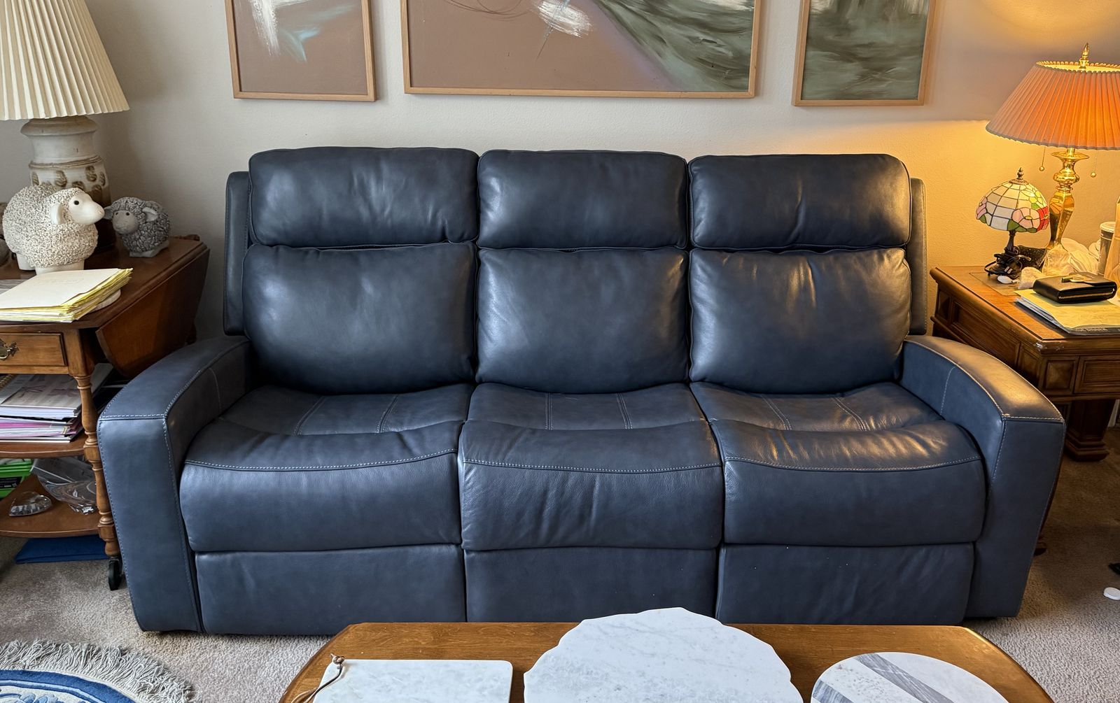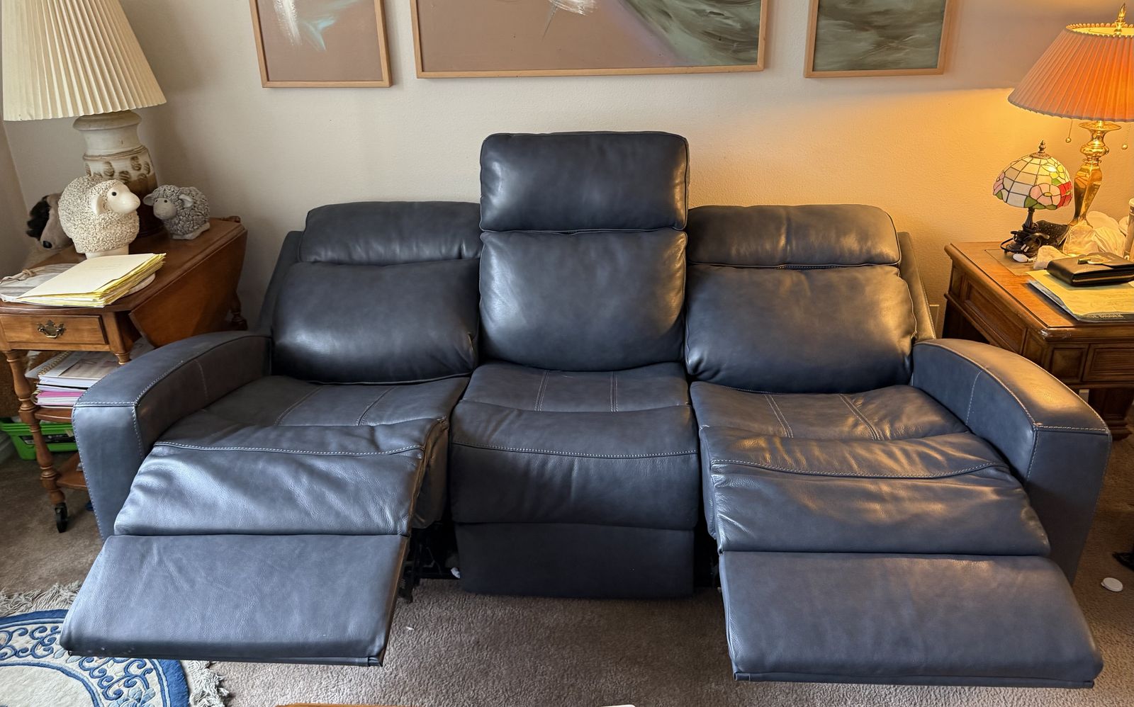 Blue color. Purchased at RC Wiley for $2700 new 1 year ago. In VG condition. Barely used by my mother in-law. Opened to offers. 84” w x 40”d x 42” h